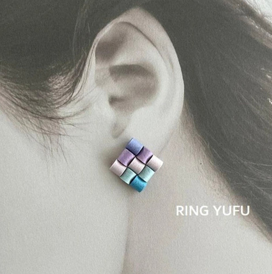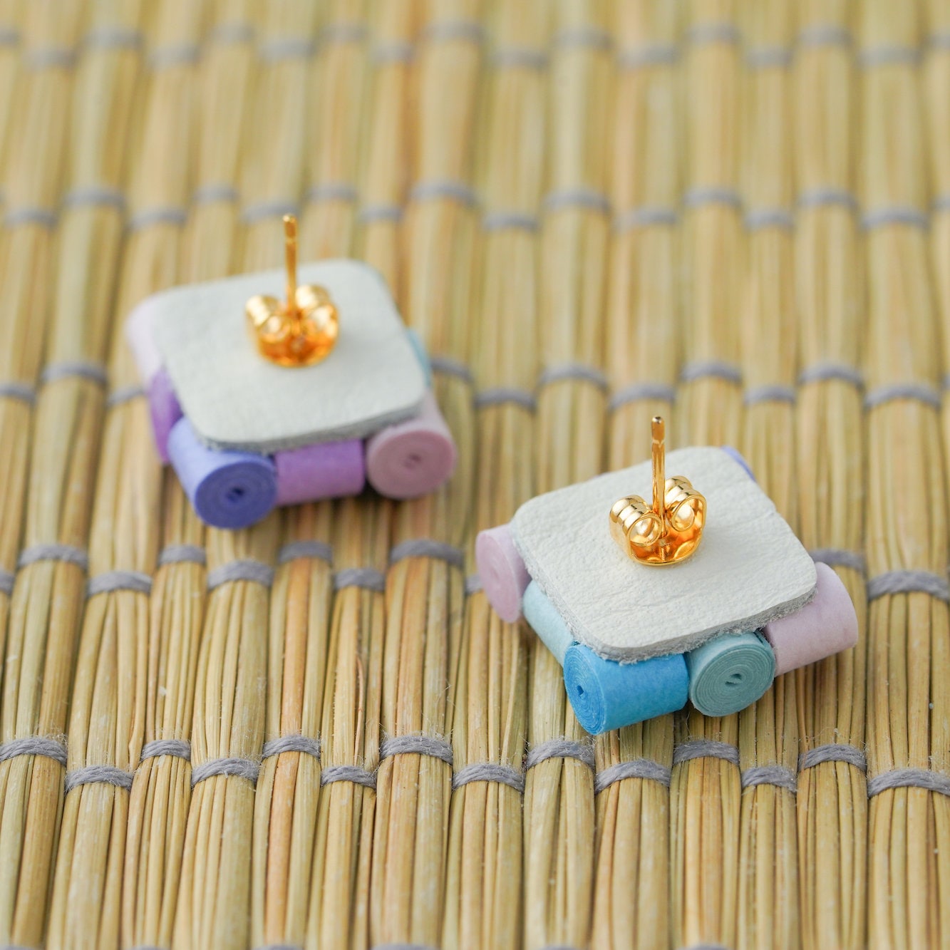 Quilling Jewelry Pierced earrings Pastel color Japanese Paper Washi by RING YUFU