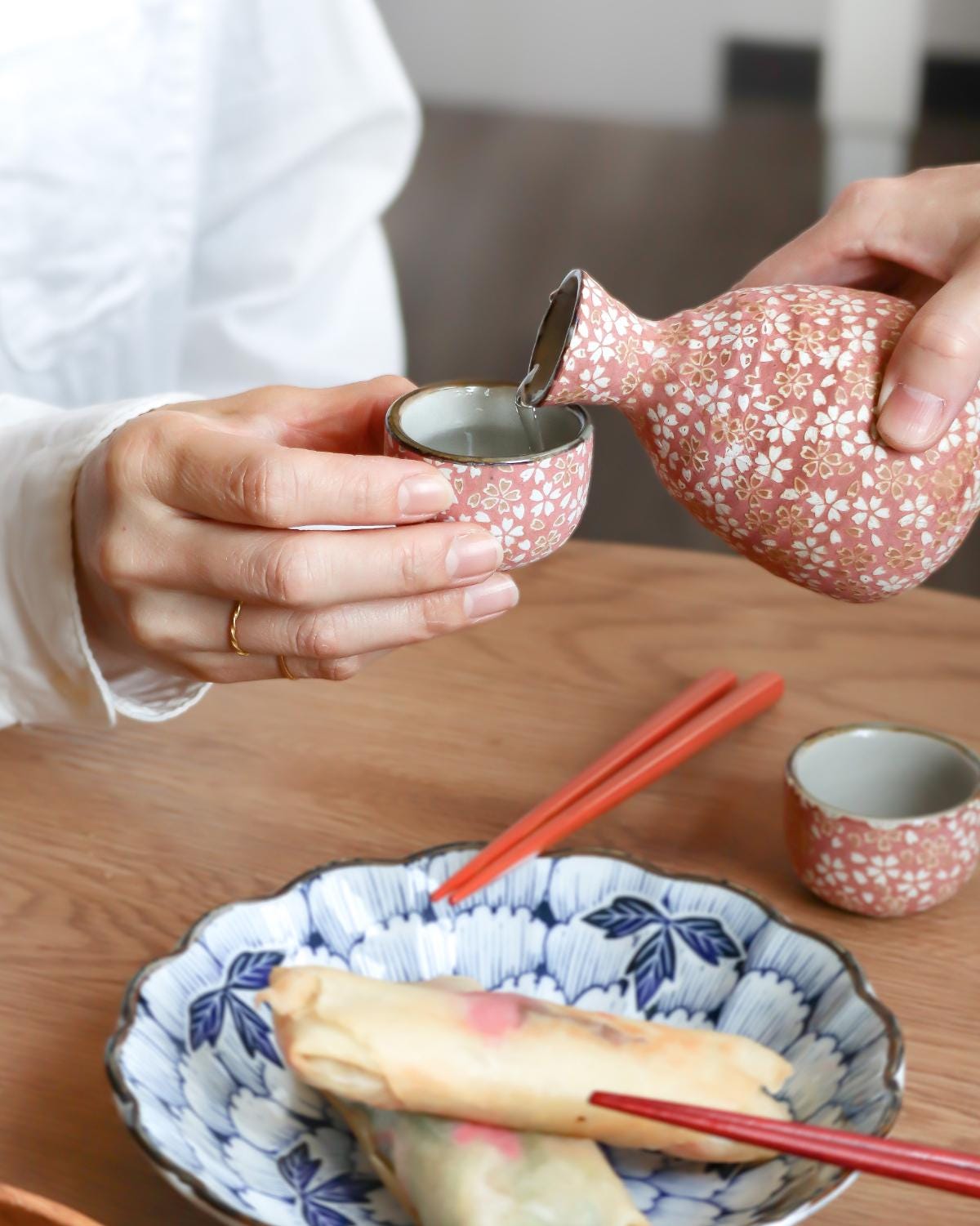 Sakura Tokkuri and Ochoko Set – Japanese Sake Bottle and Cup – Pink Ceramic by Awasaka – Made in Japan – Gift for Any Occasion