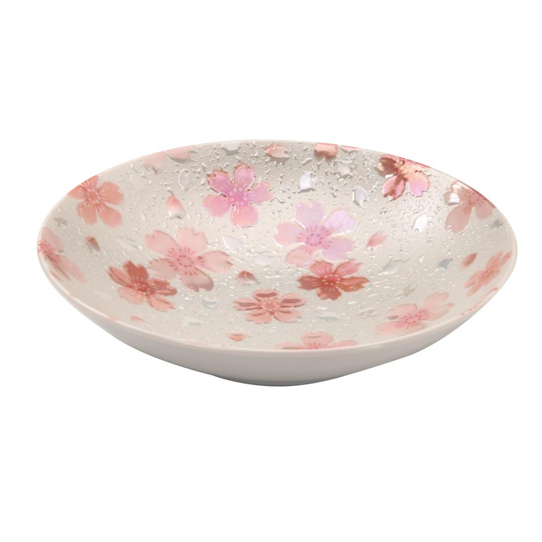 Elevate your dining experience with this stunning pair of "Sakura" (Cherry Blossom) deep plates. These plates feature a sophisticated "Luster Finish," creating a pearlescent shimmer that elegantly catches the light, reminiscent of a Japanese spring morning.