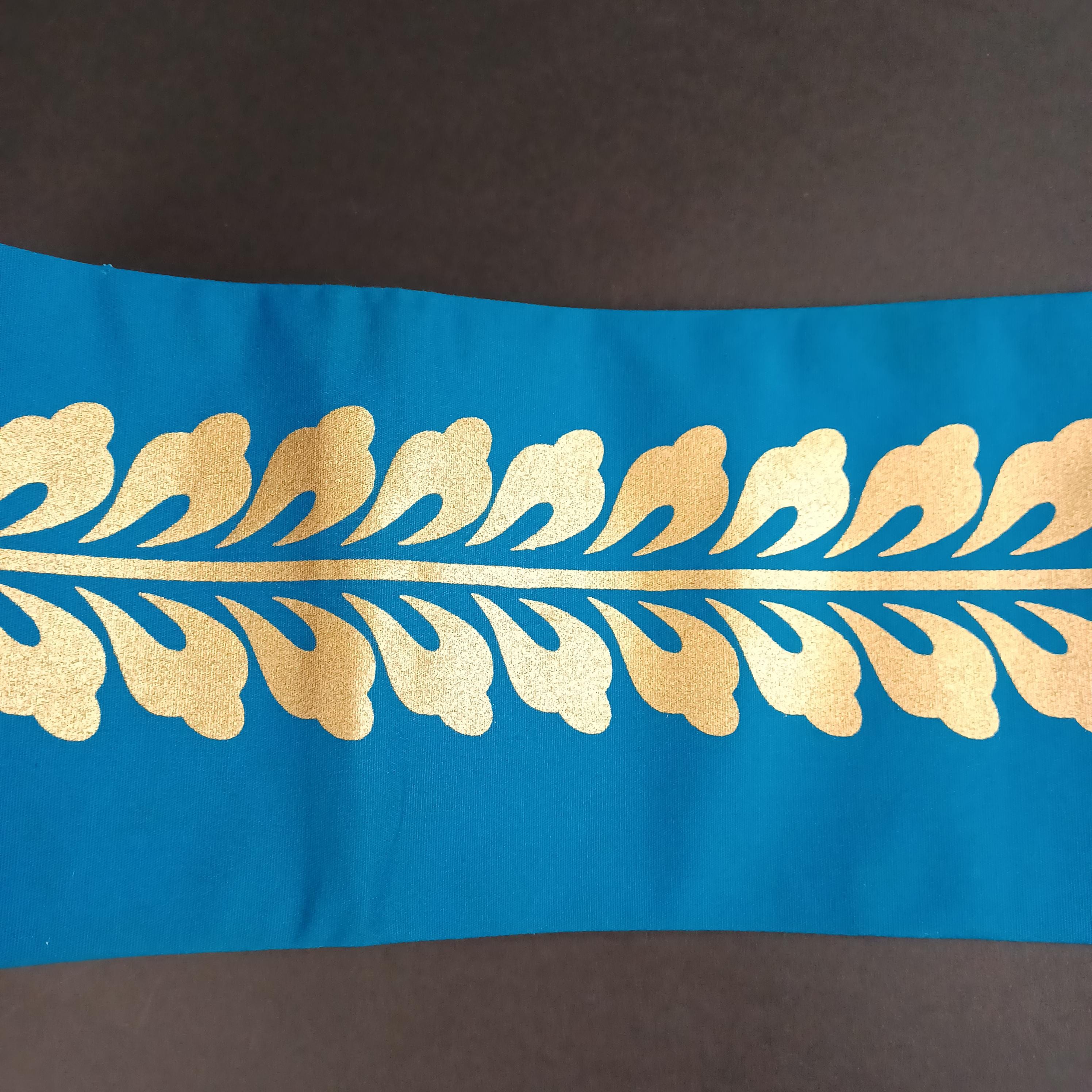 Unused Japanese Hanhaba Obi Blue with Gold Leaf Pattern Yukata Kimono Belt Women’s Accessory Summer Festival Made in Japan Gift Idea