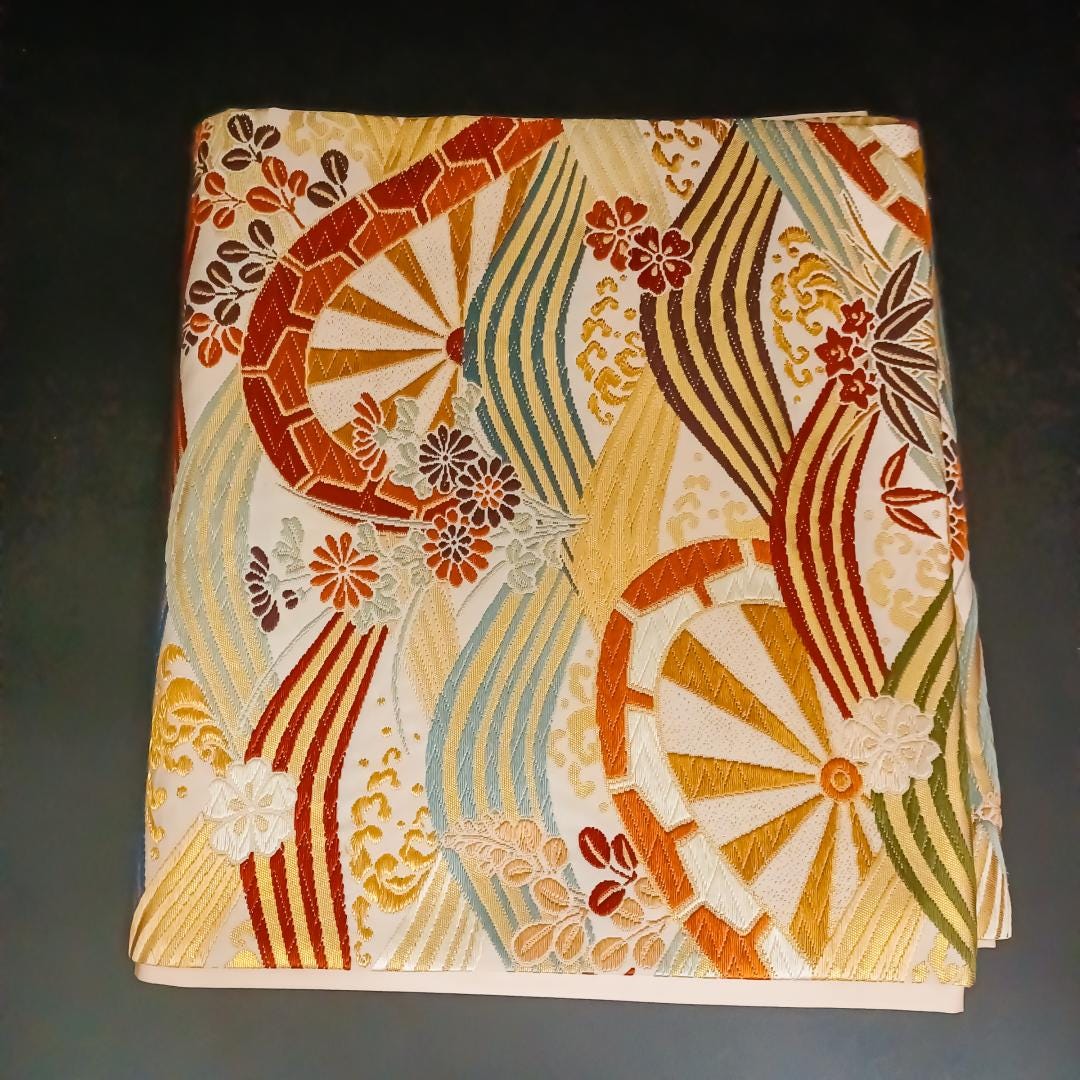 Used Fukuro Obi (Formal Double-Layer Obi) Women Kimono Obi Belt Yellow Flower Silk Made in Japan Japanese vintage traditional