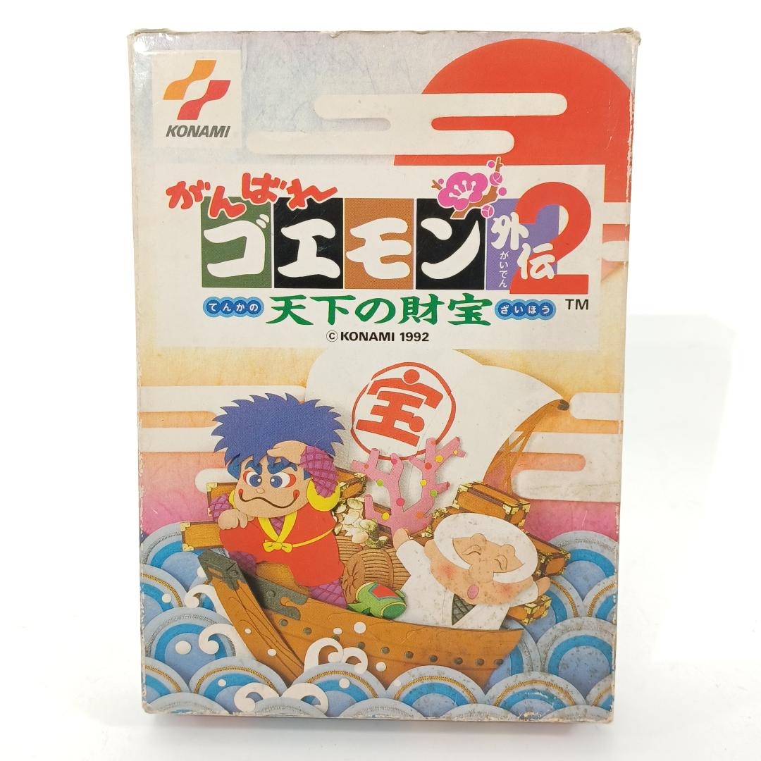 An incredible find for retro RPG collectors! This is a complete-in-box (CIB) example of "Ganbare Goemon Gaiden 2: Tenka no Zaihou" (Goemon Side Story 2: The World's Treasure), published by the legendary Konami in 1992.