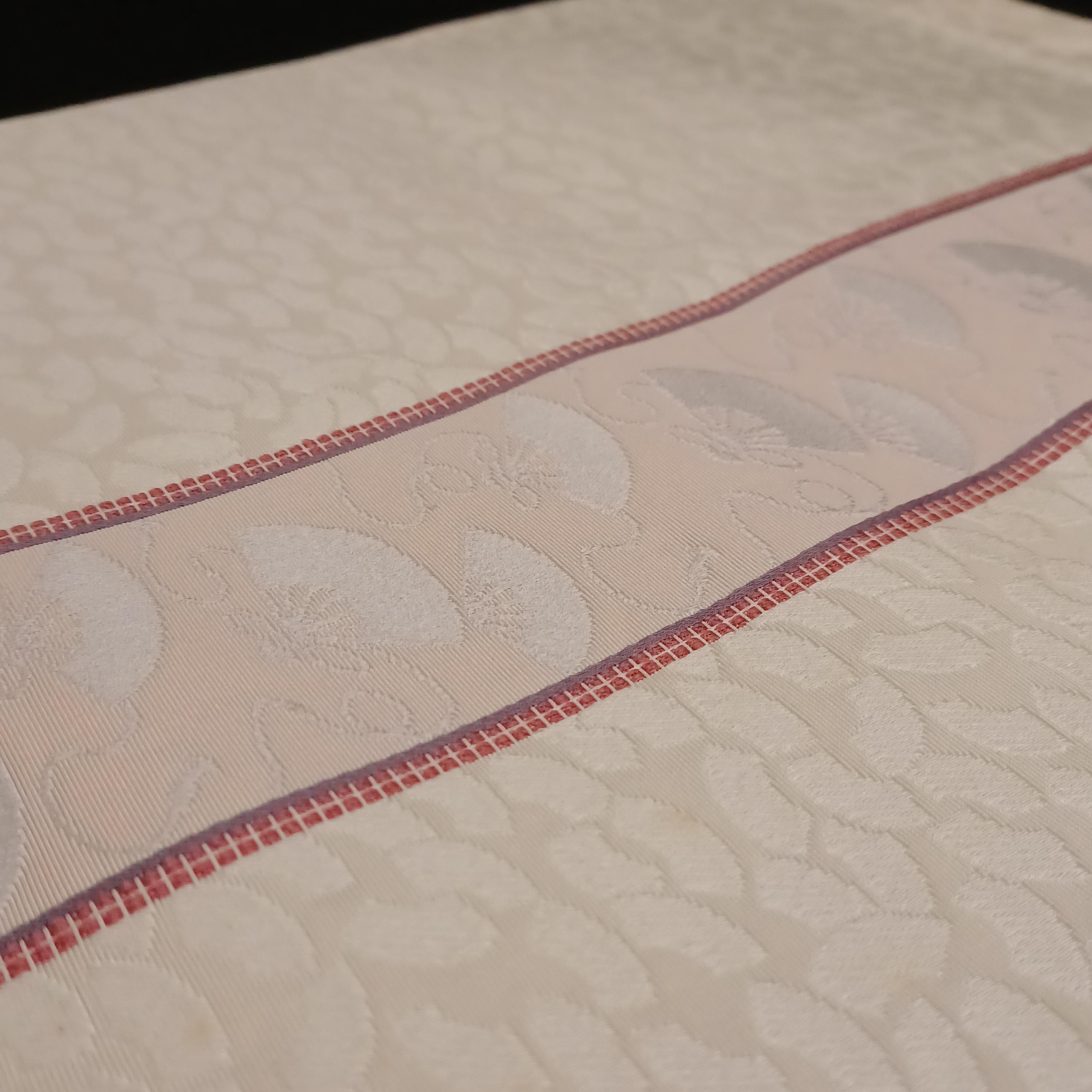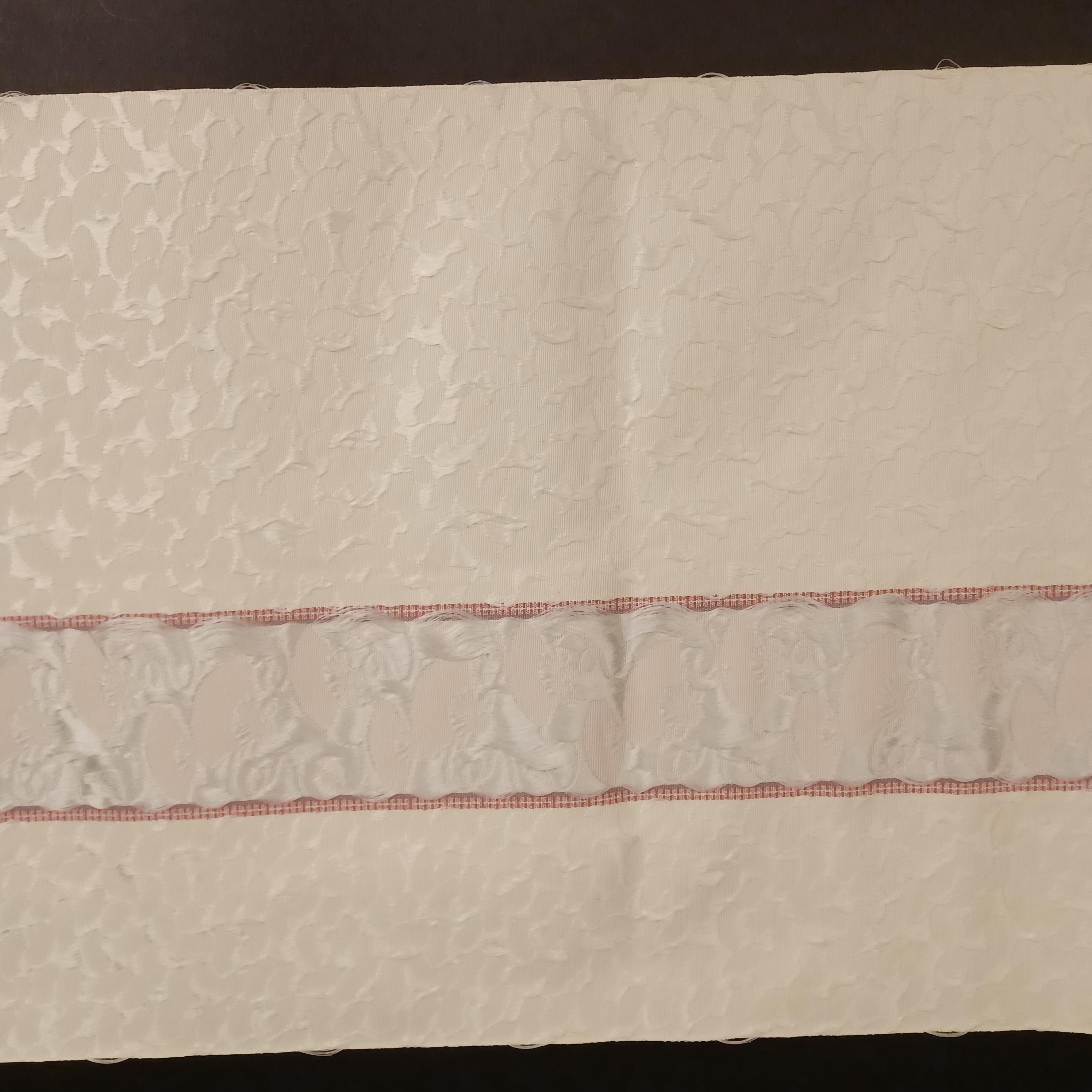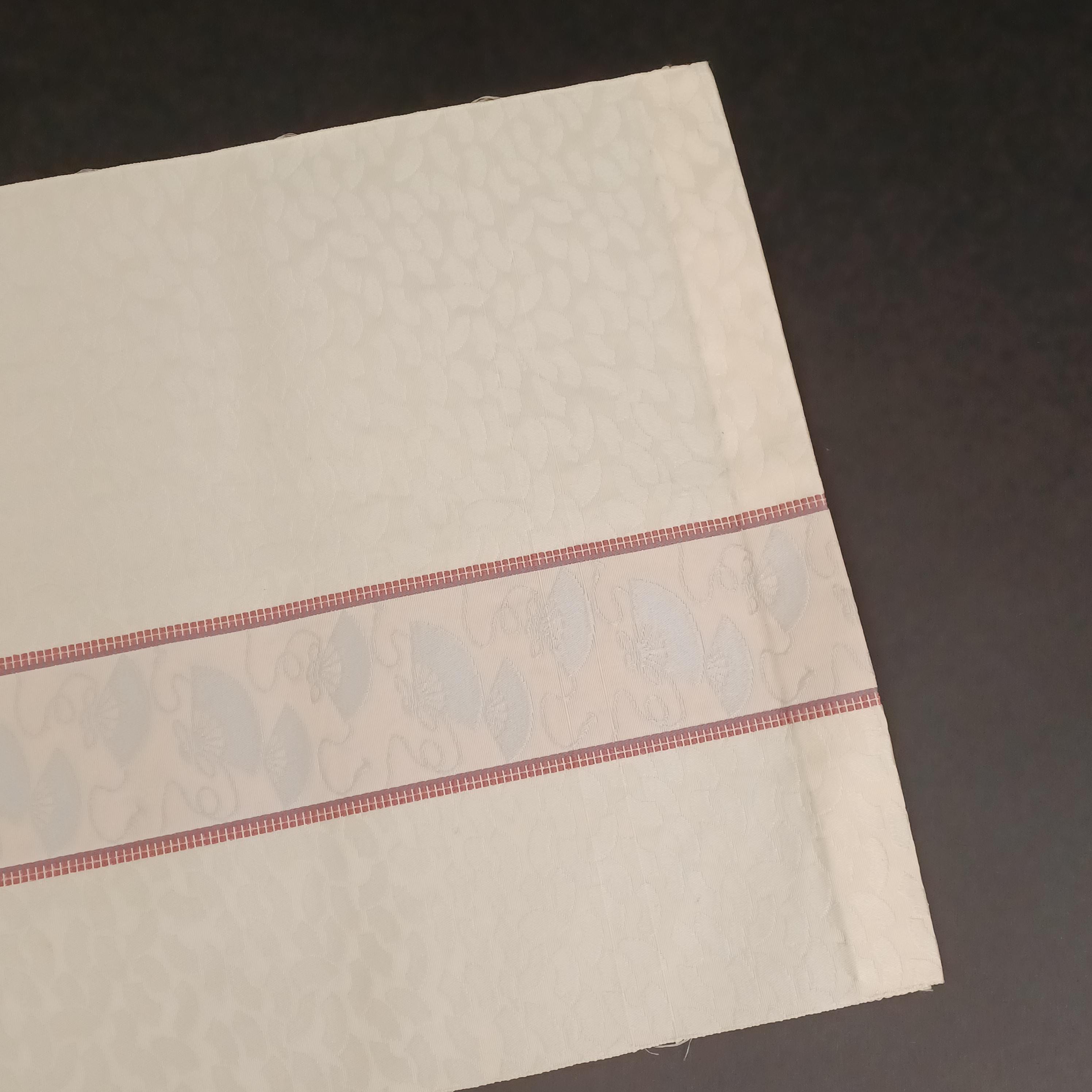 Used Japanese Fukuro Obi Belt – White Formal Kimono Sash with Elegant Fan Motif and Woven Texture – Wedding or Ceremony Accessory