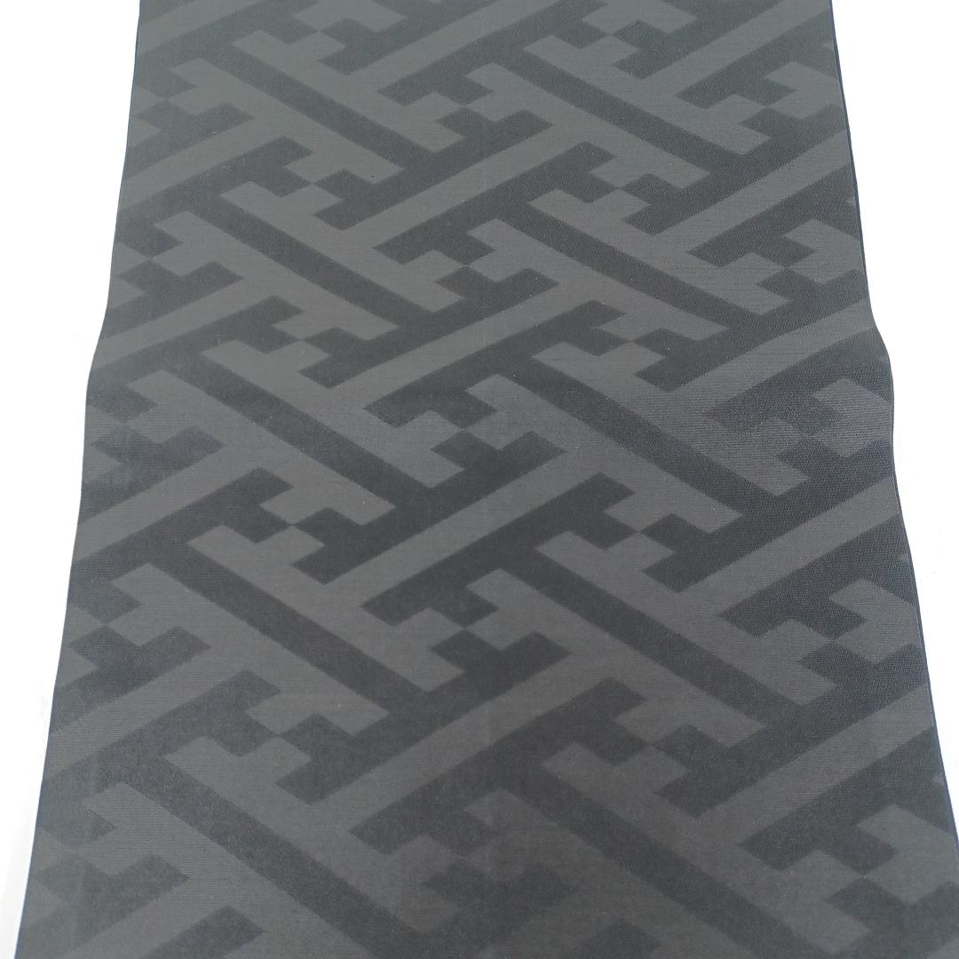 Used Japanese Fukuro Obi Black Pure Silk Sayagata Geometric Pattern Funeral Mourning Formal Sash For Craft Remake Upcycle DIY 150in