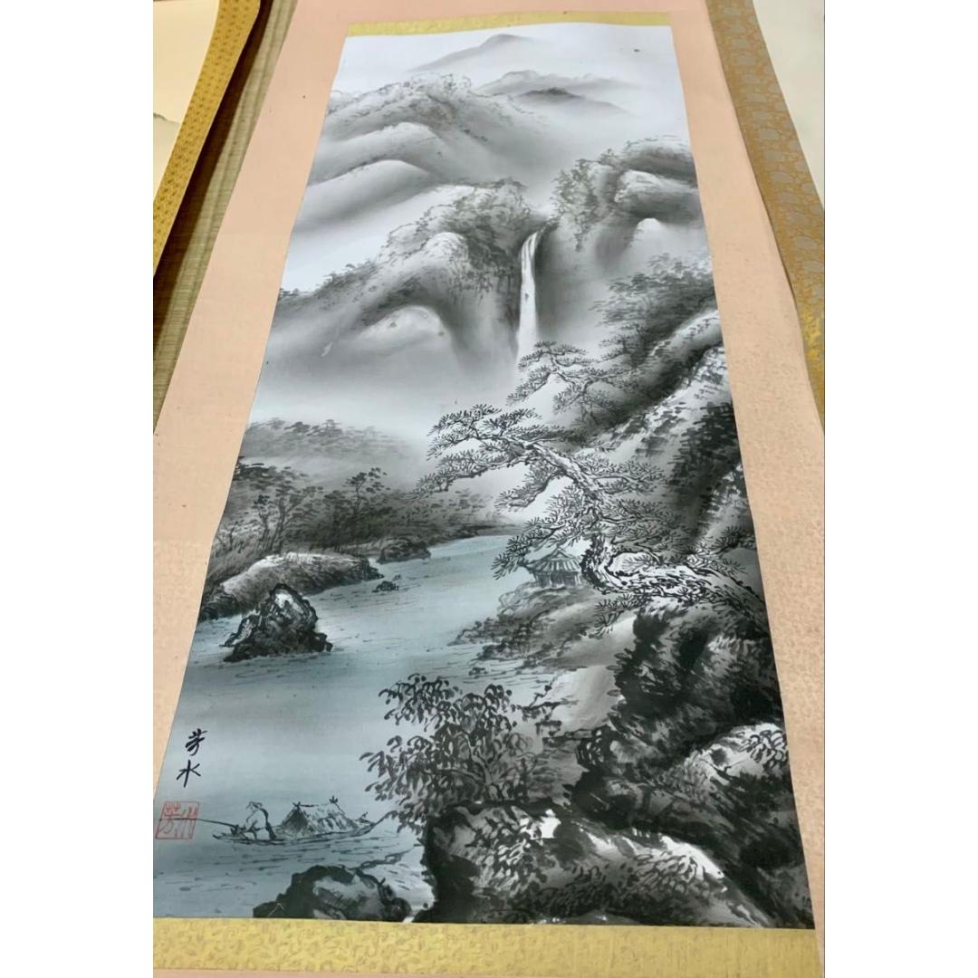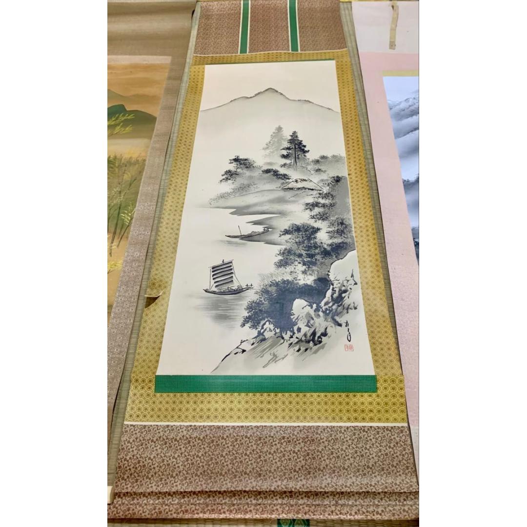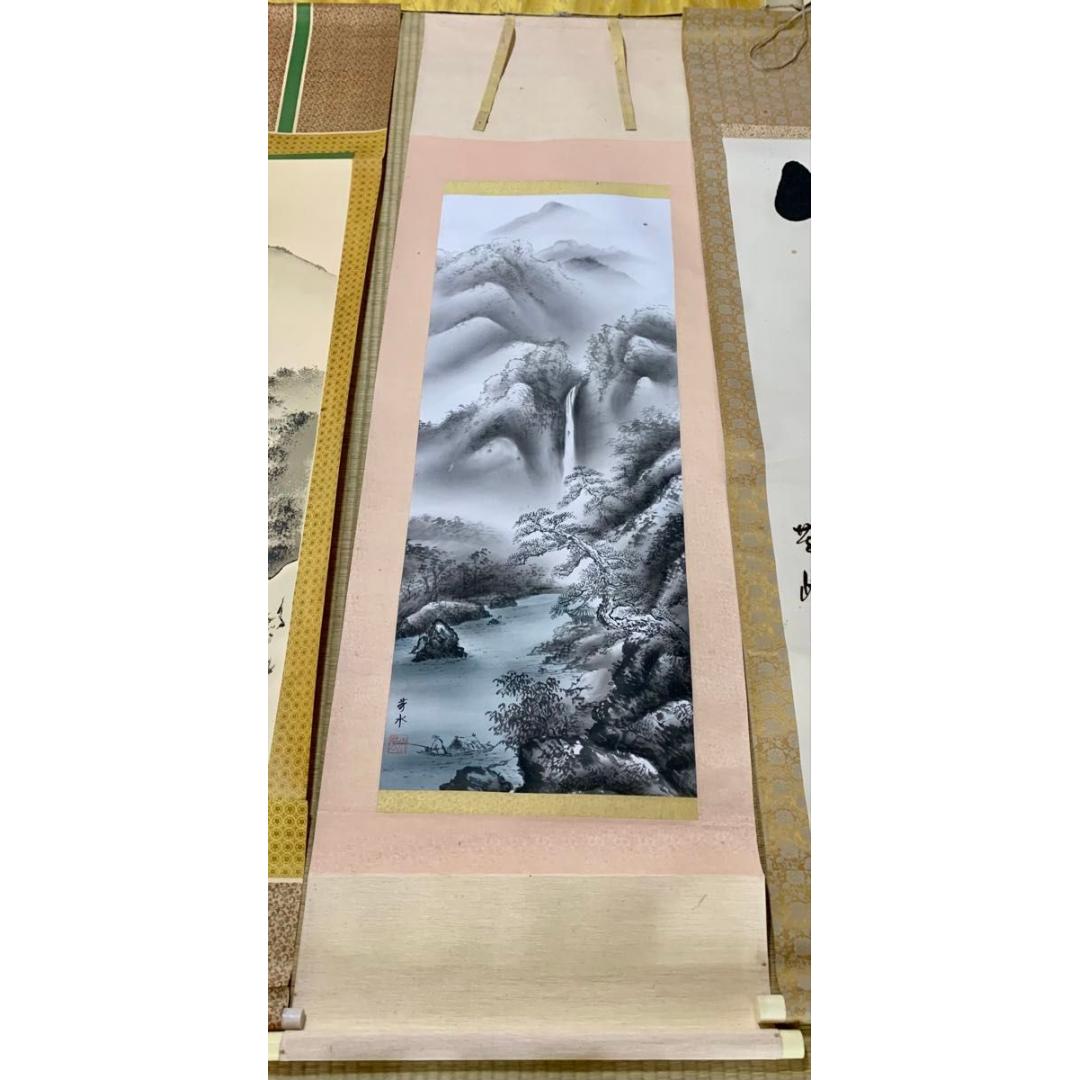 Used Japanese Hanging Scroll Lot of 5 Vintage Kakemono Paintings Sumi-e Landscape & Calligraphy Wall Art Set