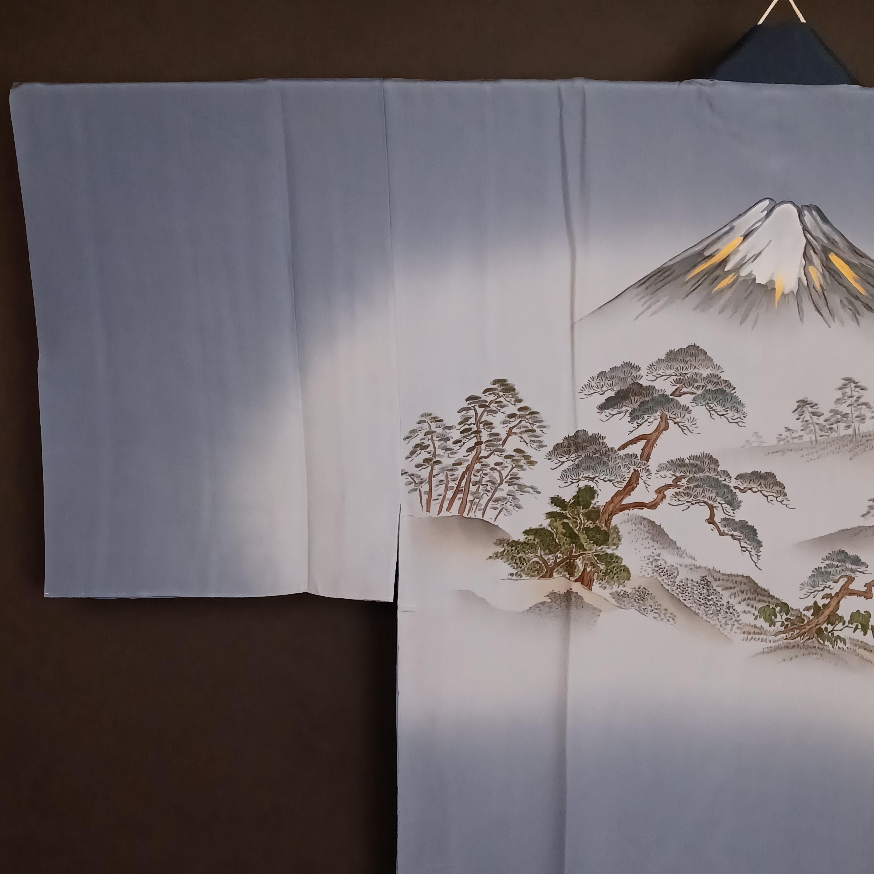 Used Japanese Men's Juban Undergarment – Mt. Fuji & Pine Tree Scene – Hand-Painted Silk Nagajuban Kimono Robe – Vintage Japan