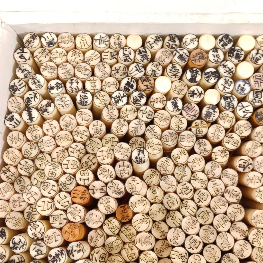 Used Japanese Name Stamp Hanko Bulk Lot 300+ Pieces Traditional Kanji Seals for Scrapbooking Journaling Mixed Plastic and Wood Materials