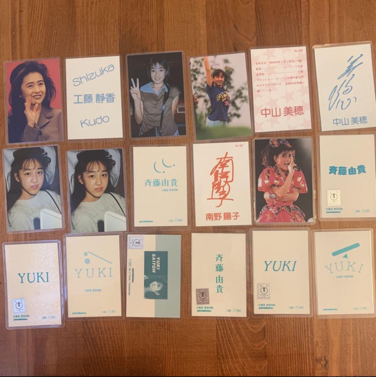Step back in time with this fantastic lot of 18 Japanese idol bromide photos from the Showa era! This collection features some of the most beloved stars of the time, including Shizuka Kudo, Rie Miyazawa, Miho Nakayama, Yui Saito, and more. Some of these photos are unique items that were sent to a fan club member, making this set potentially very rare!
