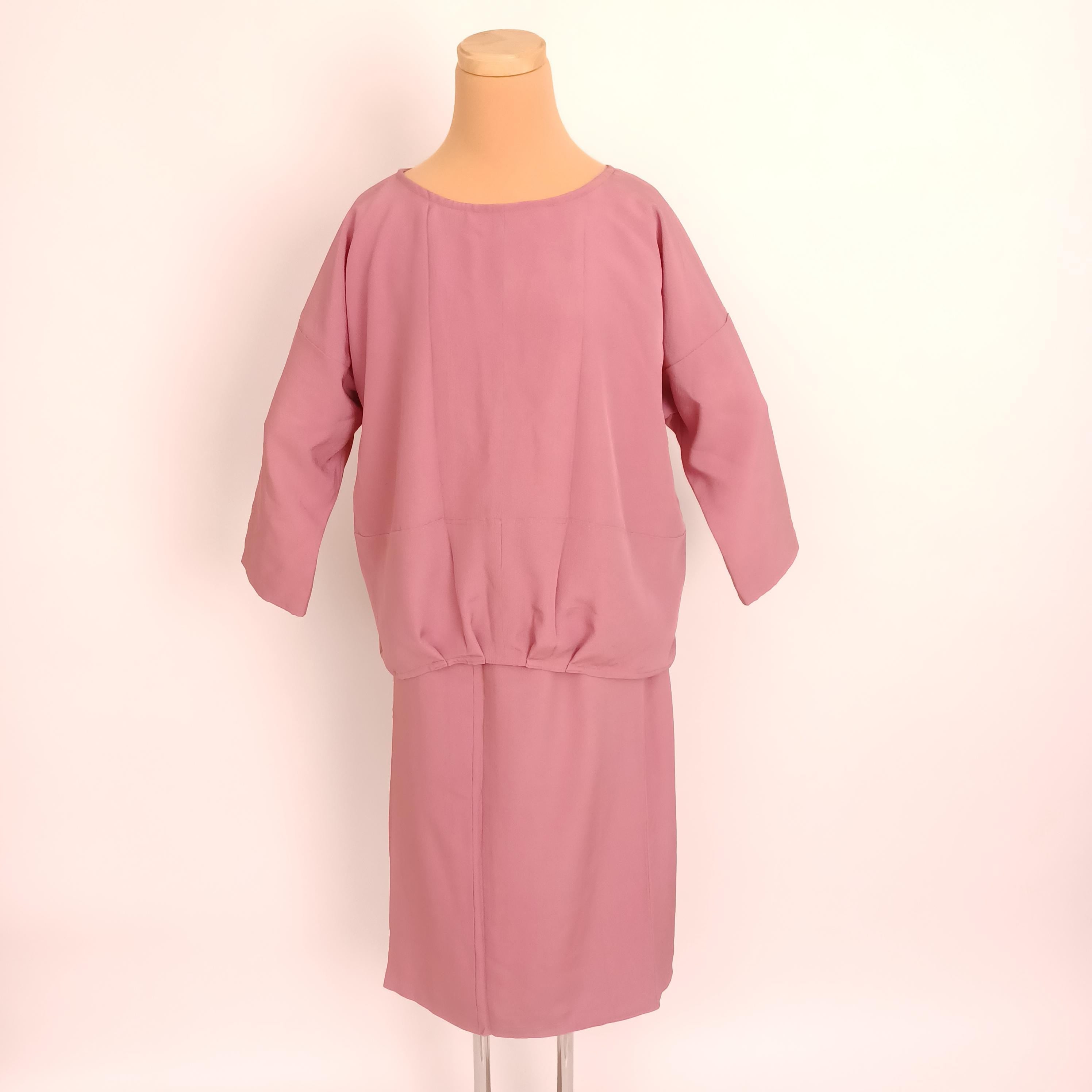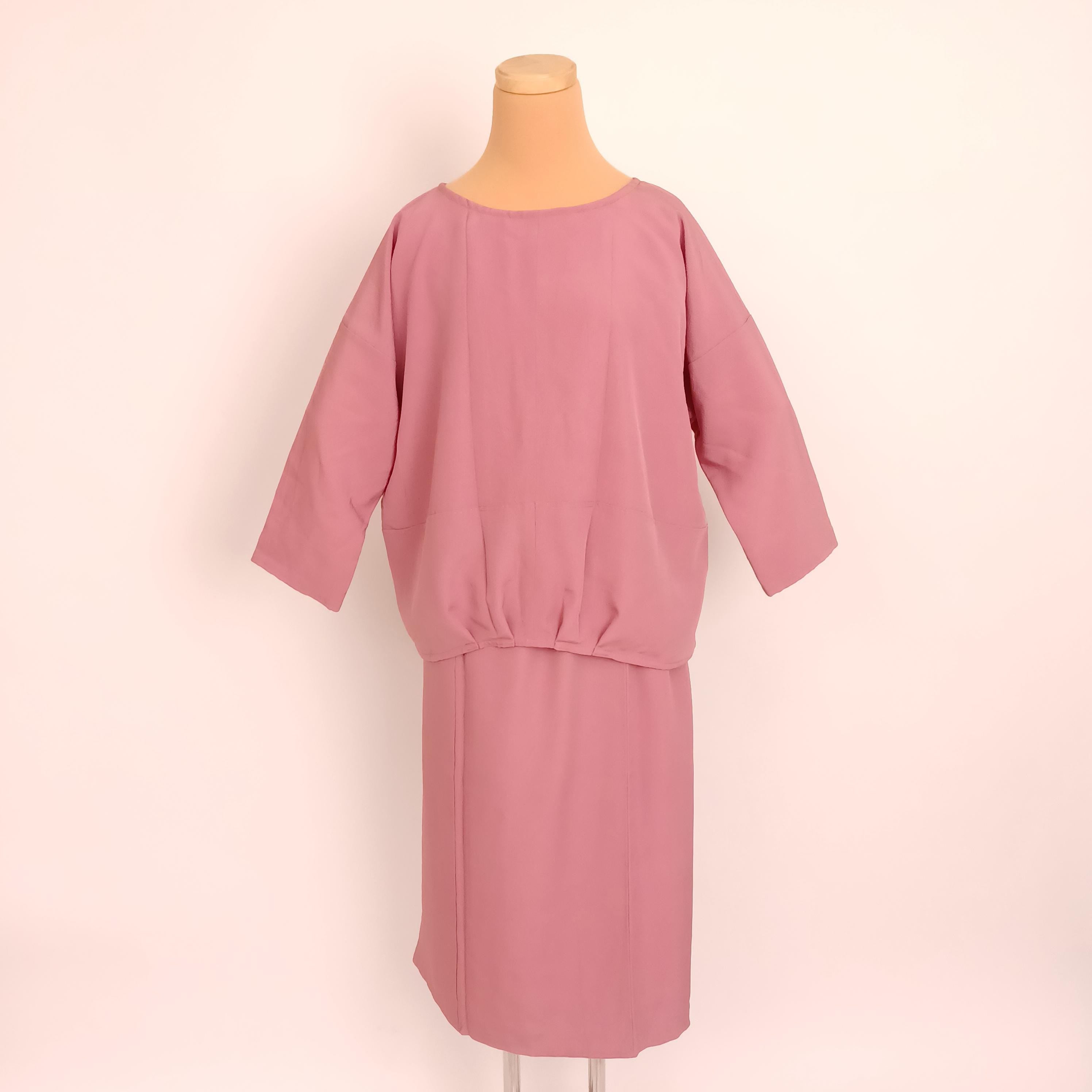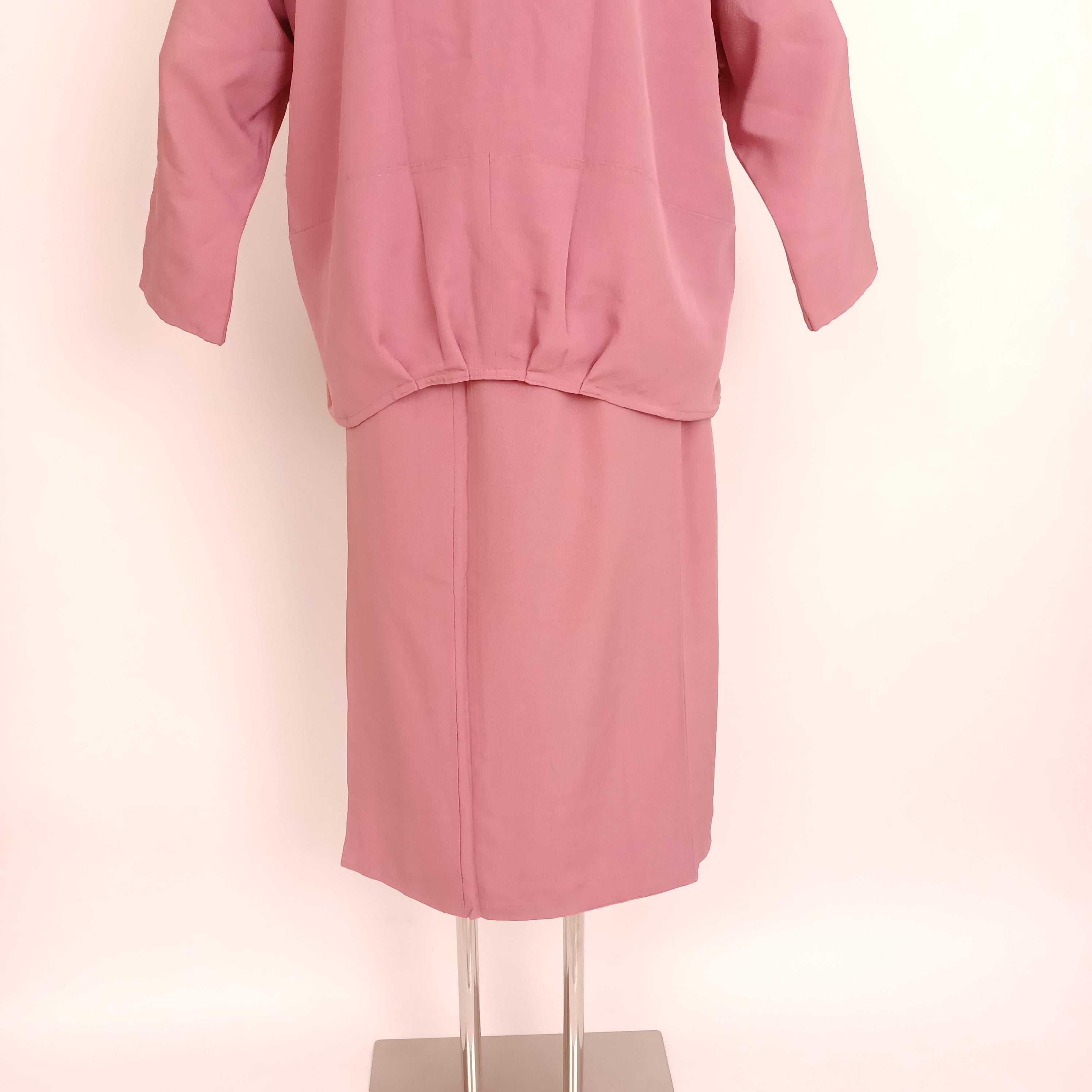 Used Japanese Silk Two-Piece Set – Upcycled from Vintage Kimono – Handmade Top & Skirt – Soft Pink – Elegant Eco Fashion – One of a Kind
