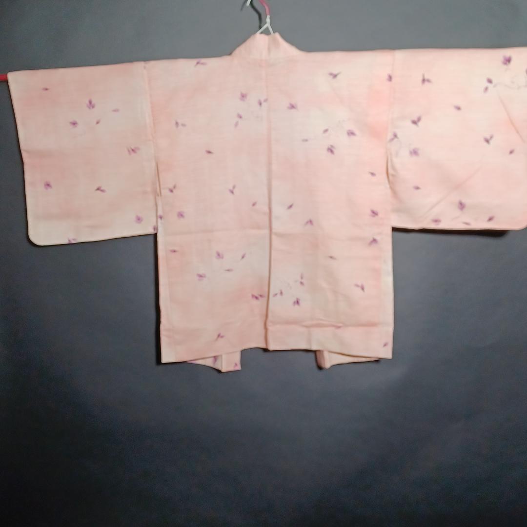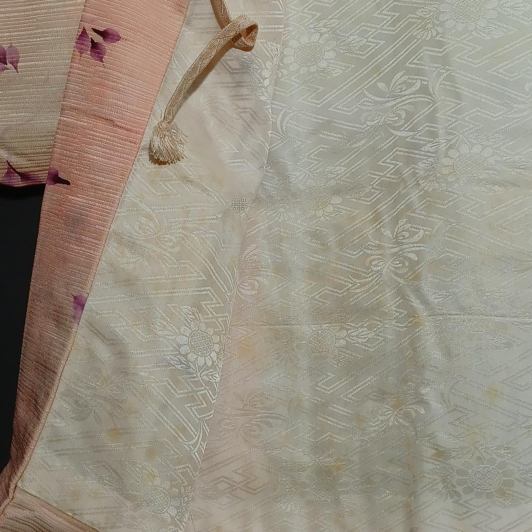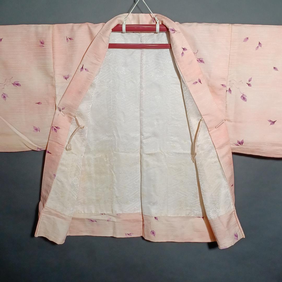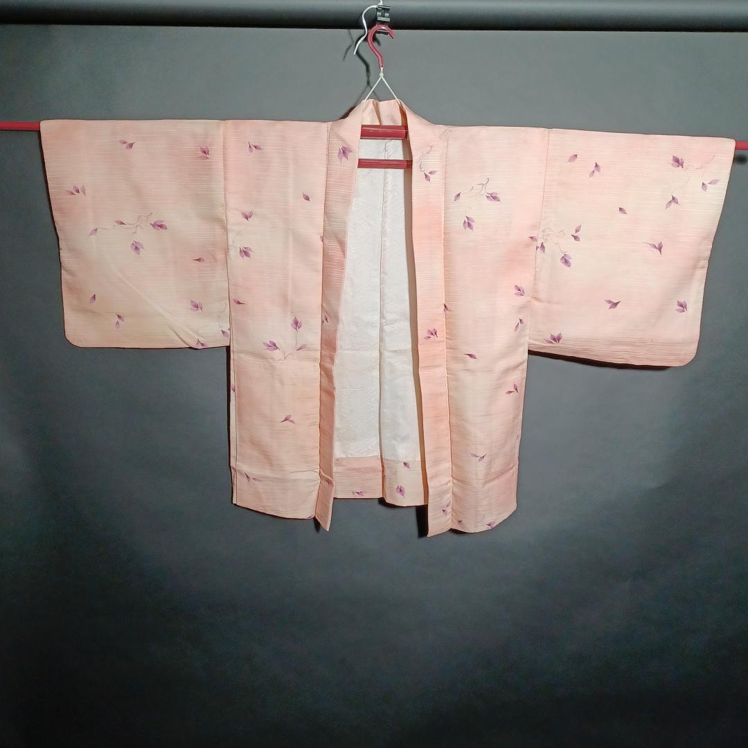 Used Japanese Vintage Haori Jacket Pale Pink with Elegant Floral Pattern Traditional Silk Kimono Cardigan Women's Outerwear Height 76cm
