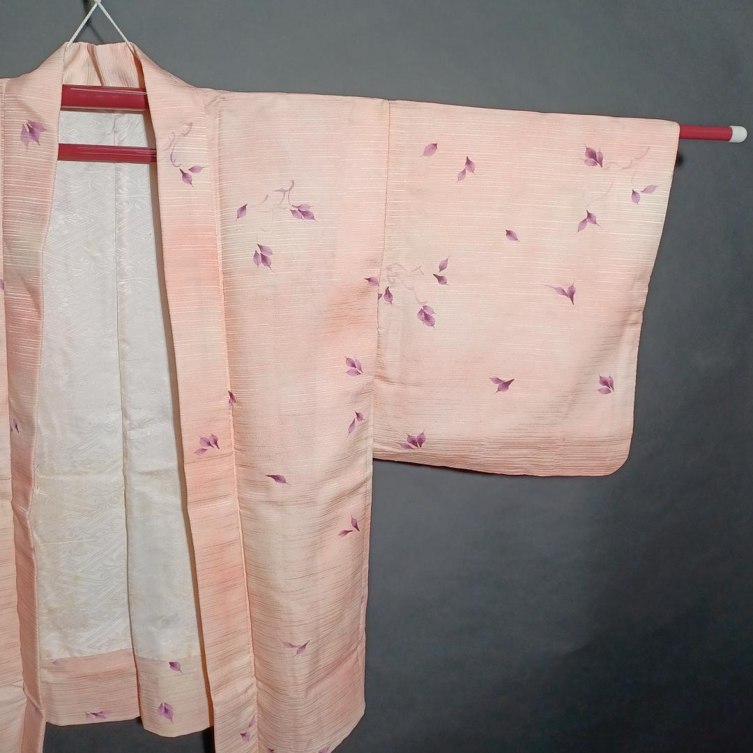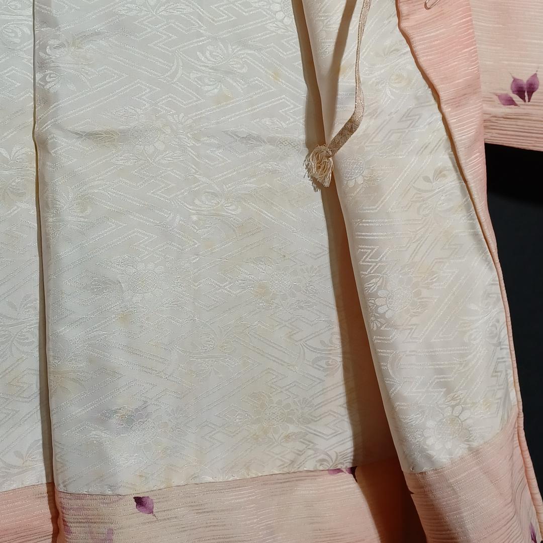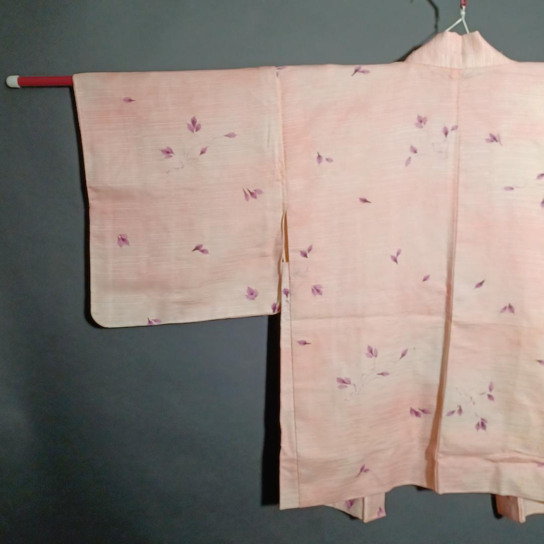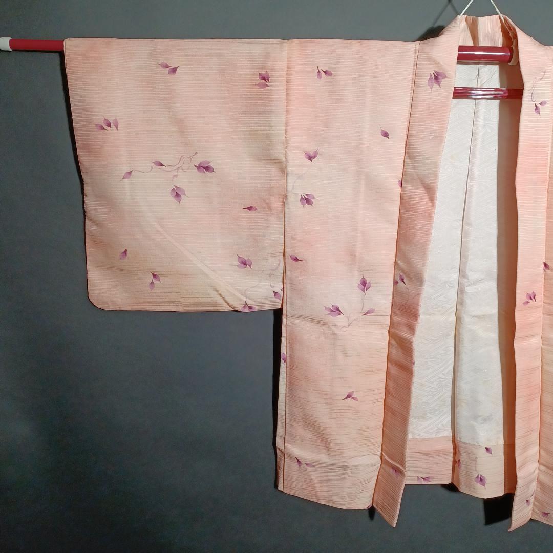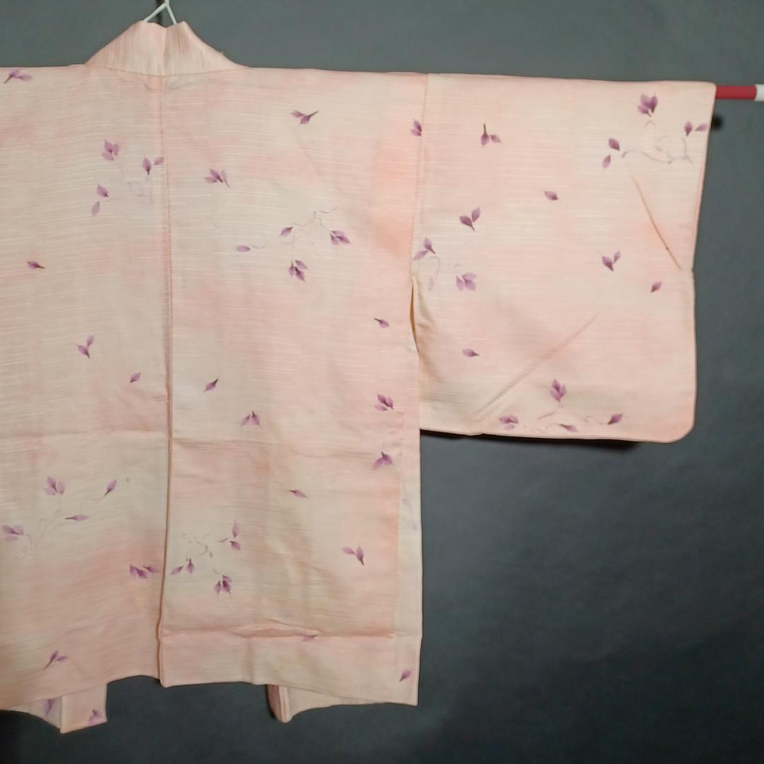 Used Japanese Vintage Haori Jacket Pale Pink with Elegant Floral Pattern Traditional Silk Kimono Cardigan Women's Outerwear Height 76cm