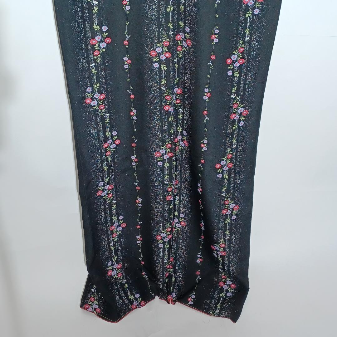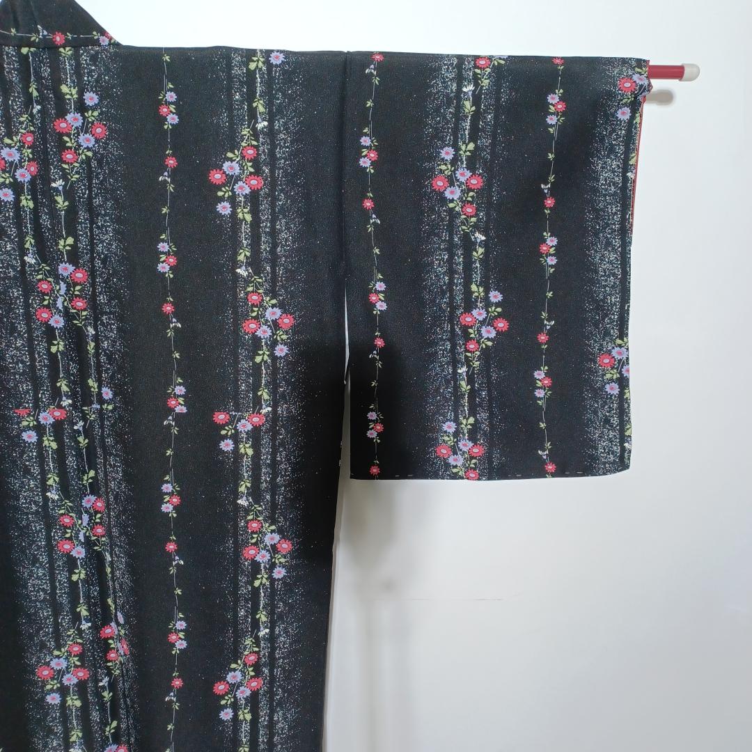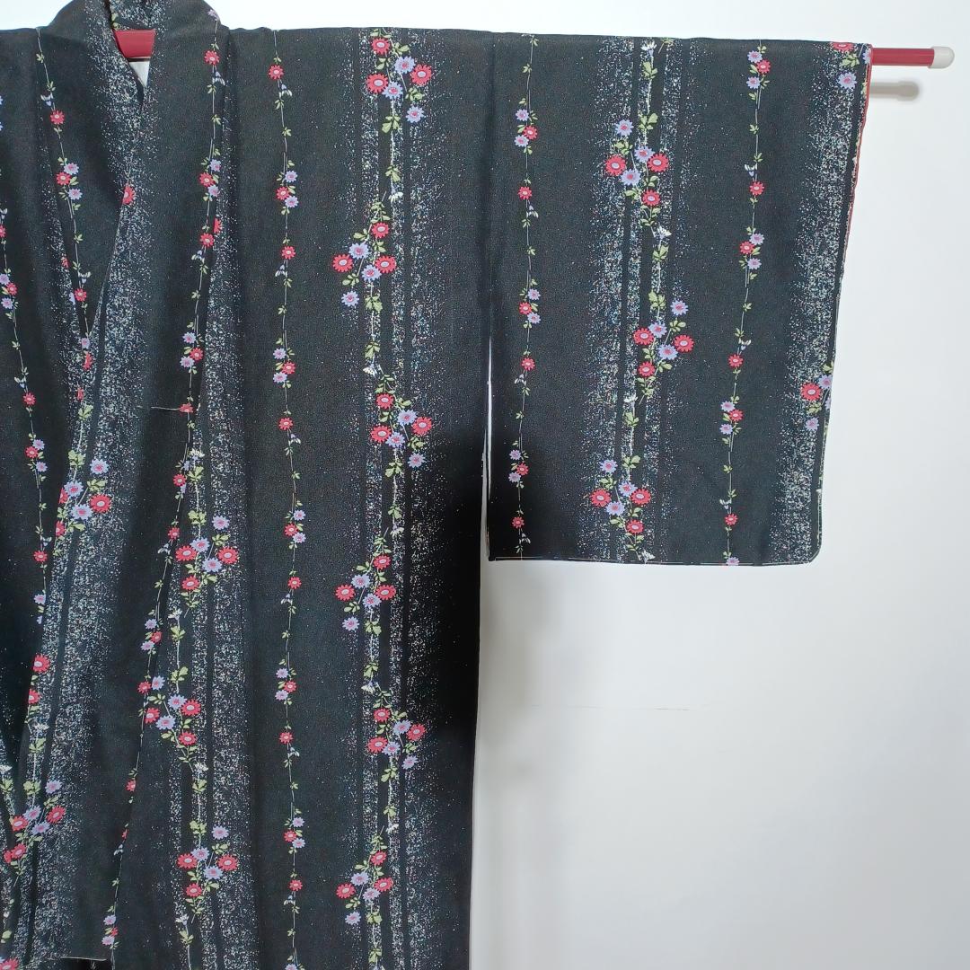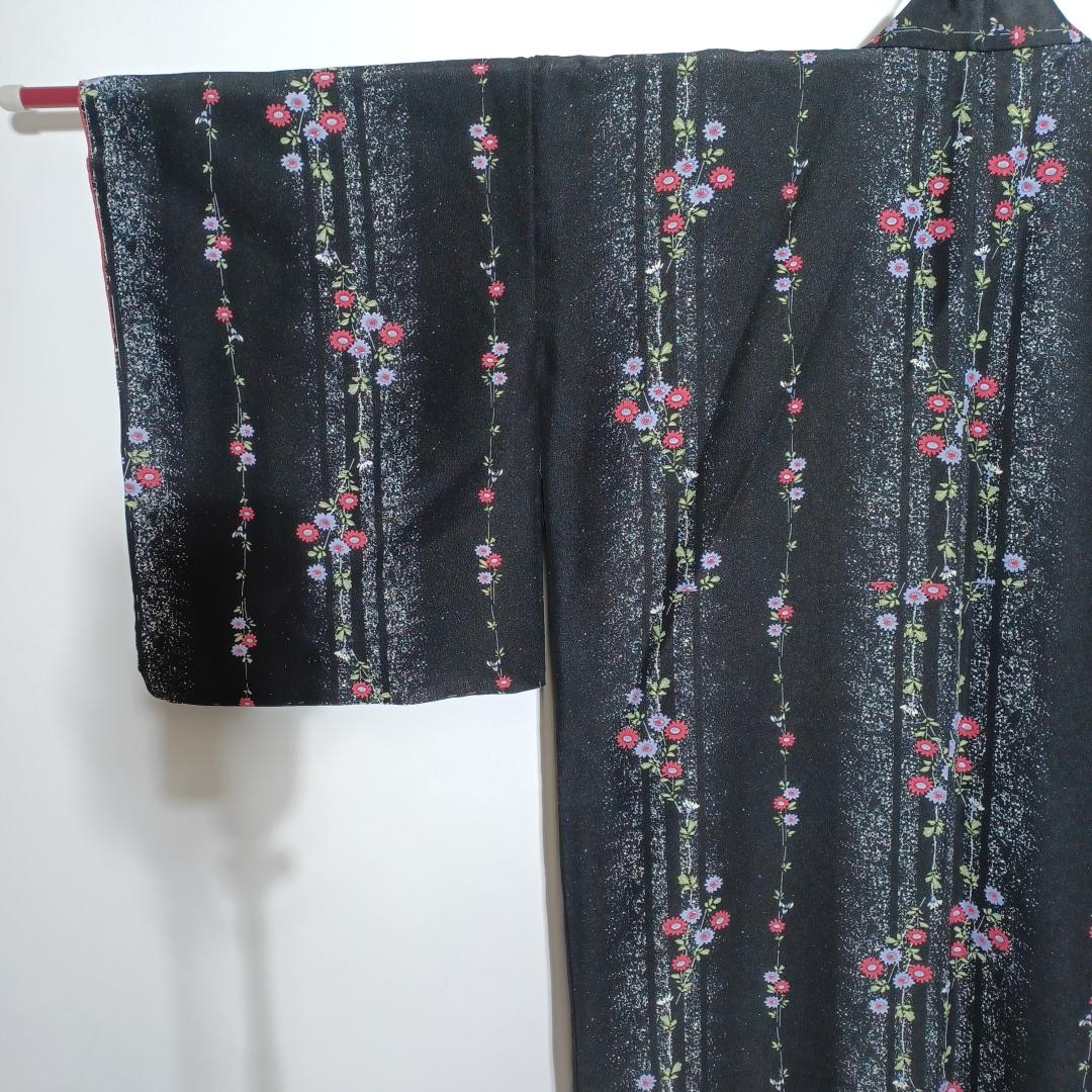 Used Japanese Vintage Kimono Black with Elegant Floral Pattern Traditional Robe for Women Silk Feel Classic Asian Fashion Length 165cm