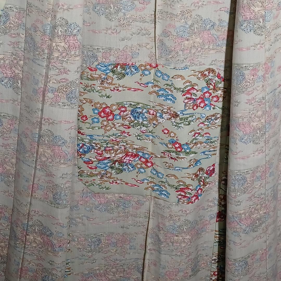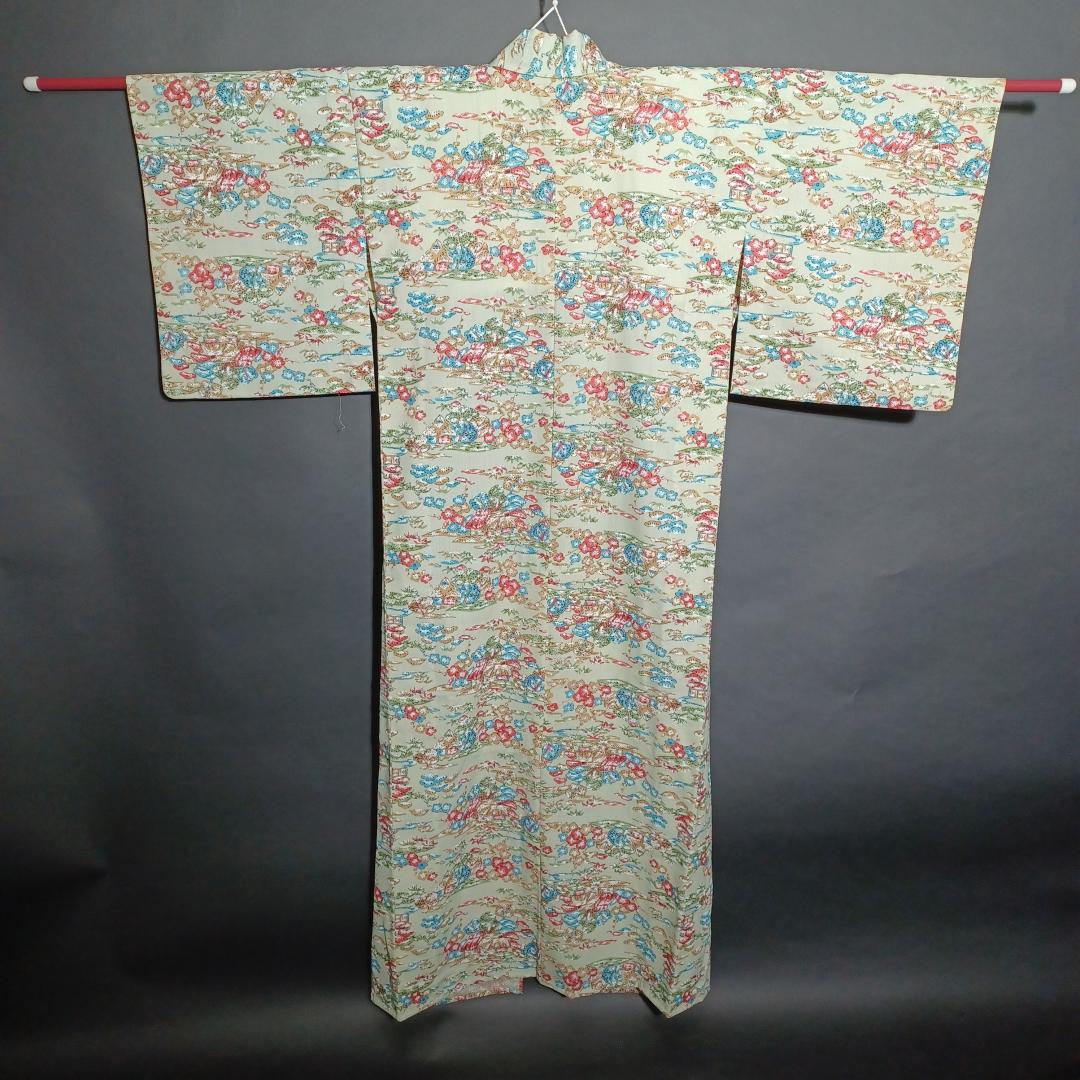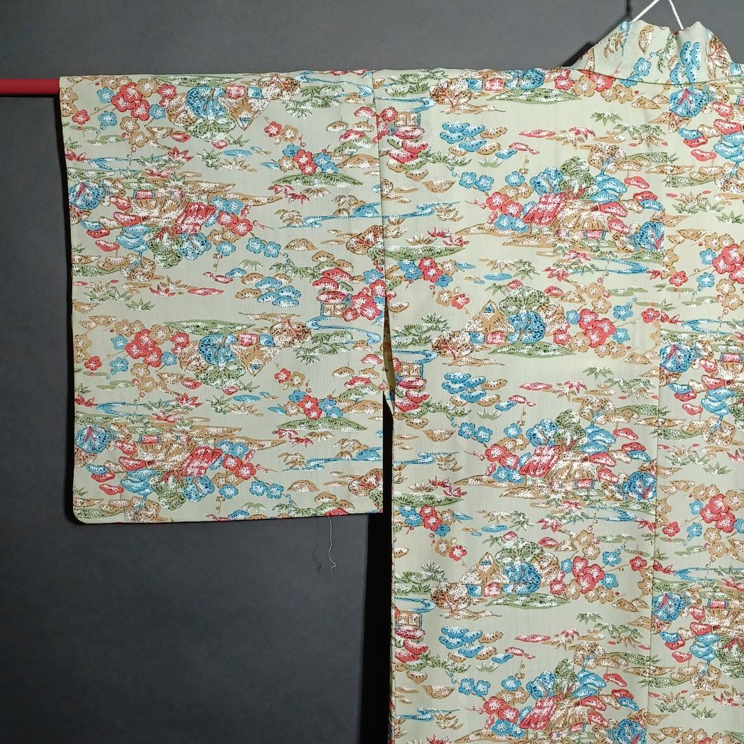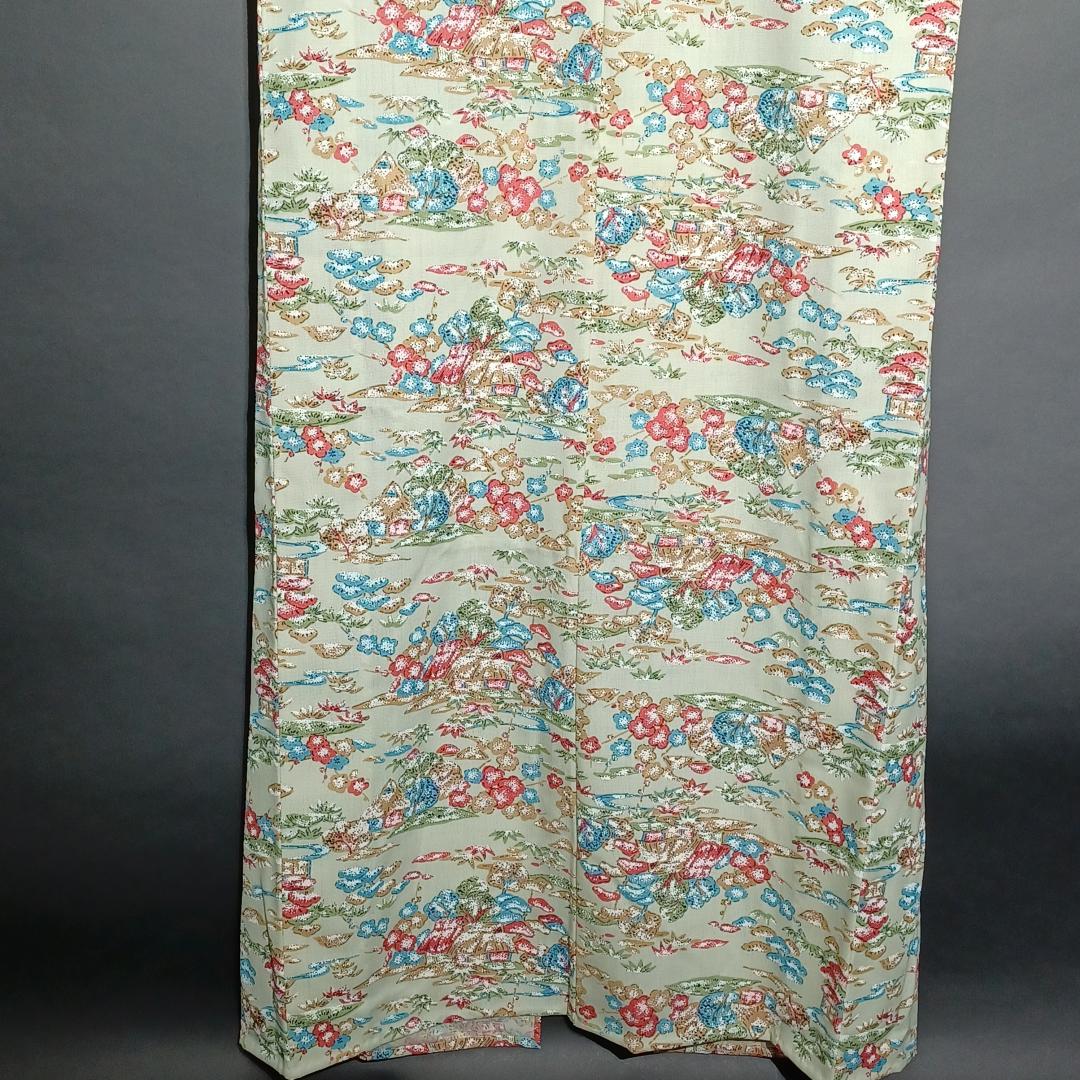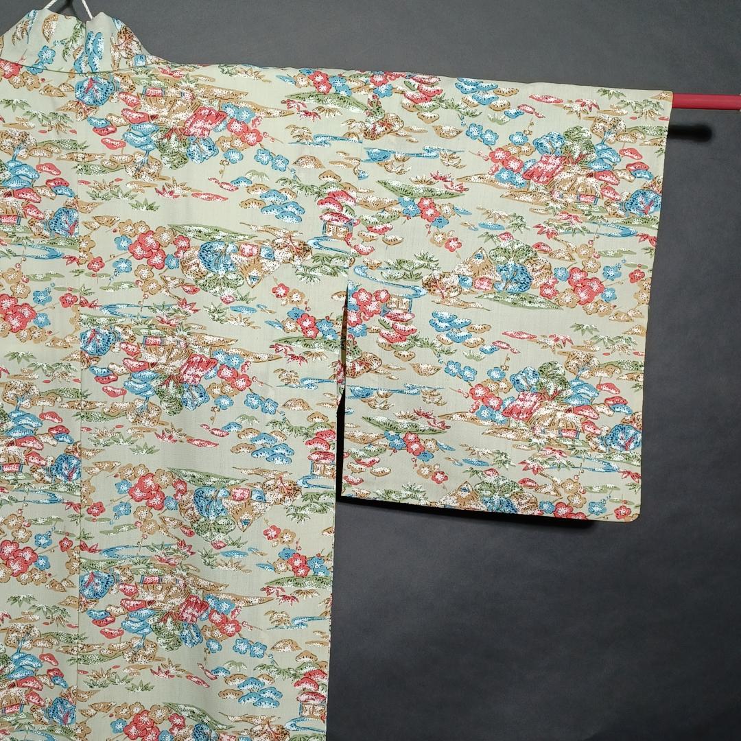 Used Japanese Vintage Kimono Pale Green with Elegant Floral Pattern Traditional Silk Women's Robe Kimono Dress Long Gown Height 150cm 59in