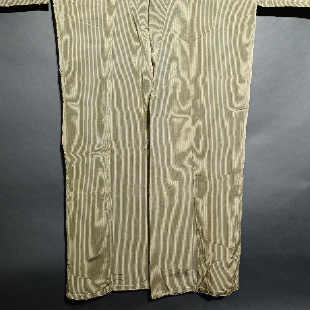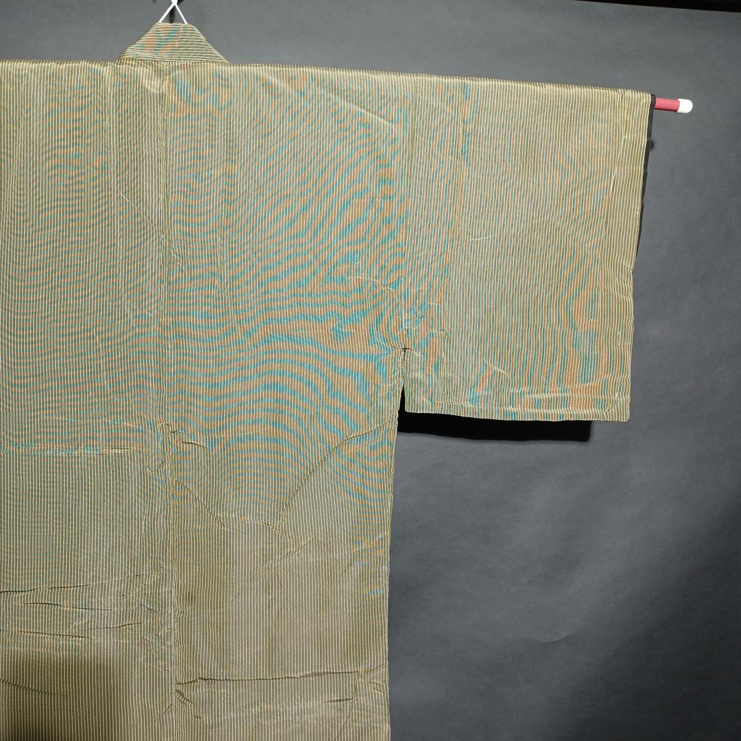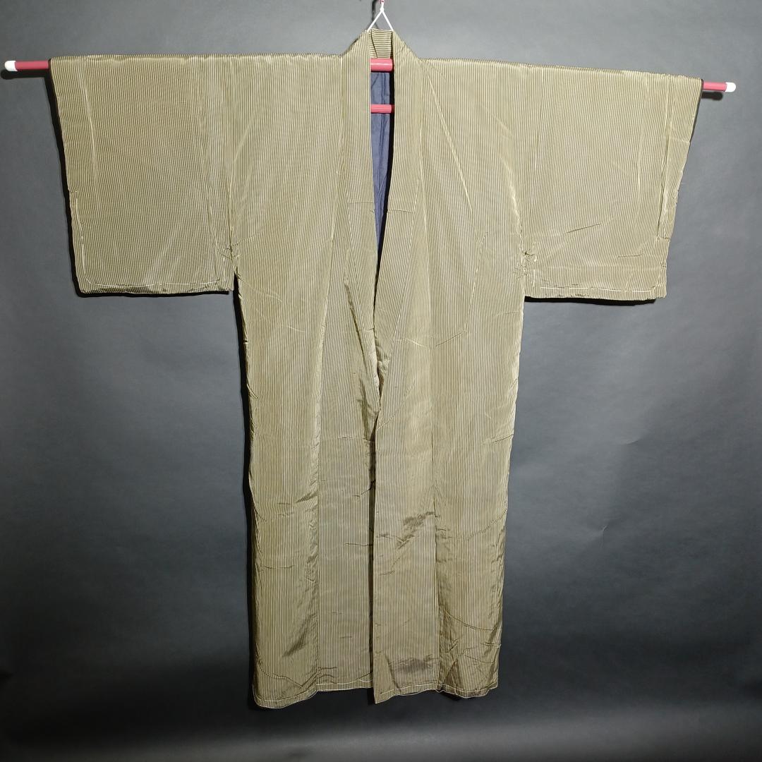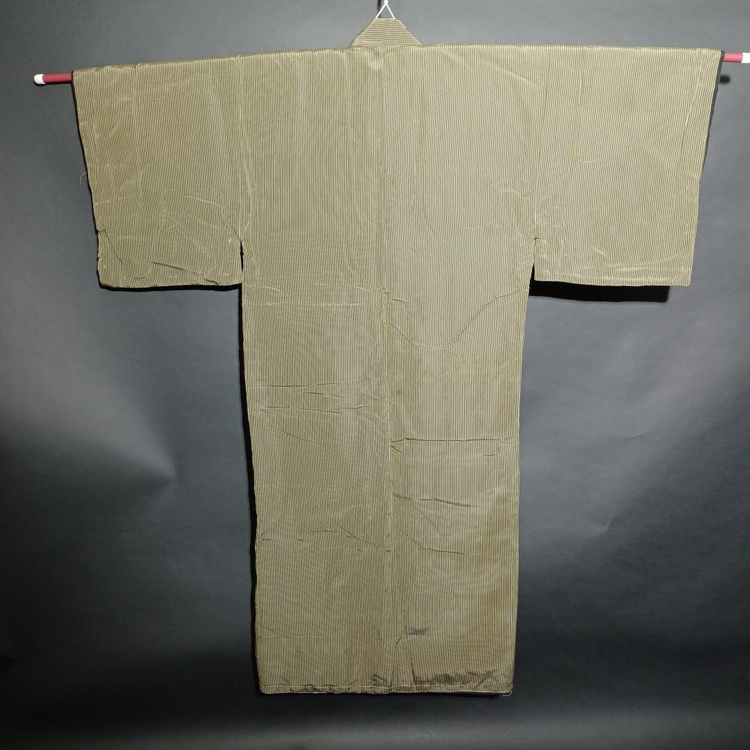 Used Japanese Vintage Men's Kimono Pale Green with Classic Stripe Pattern Traditional Cotton Yukata Robe Loungewear Height 137cm 54in