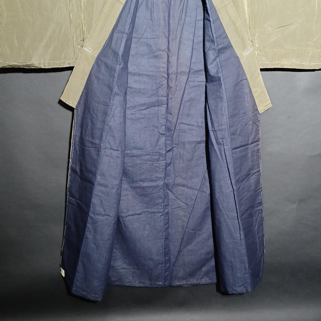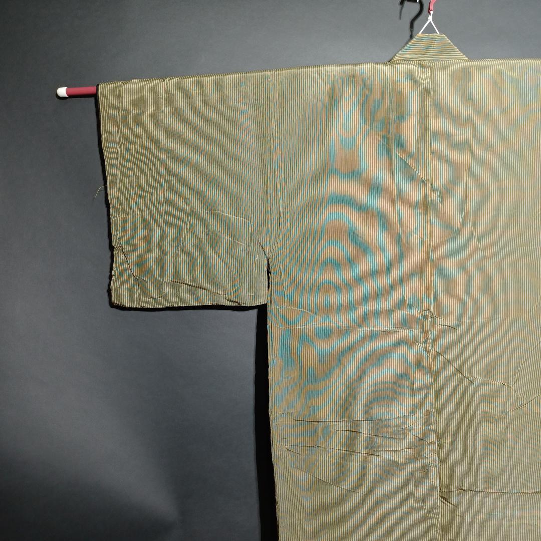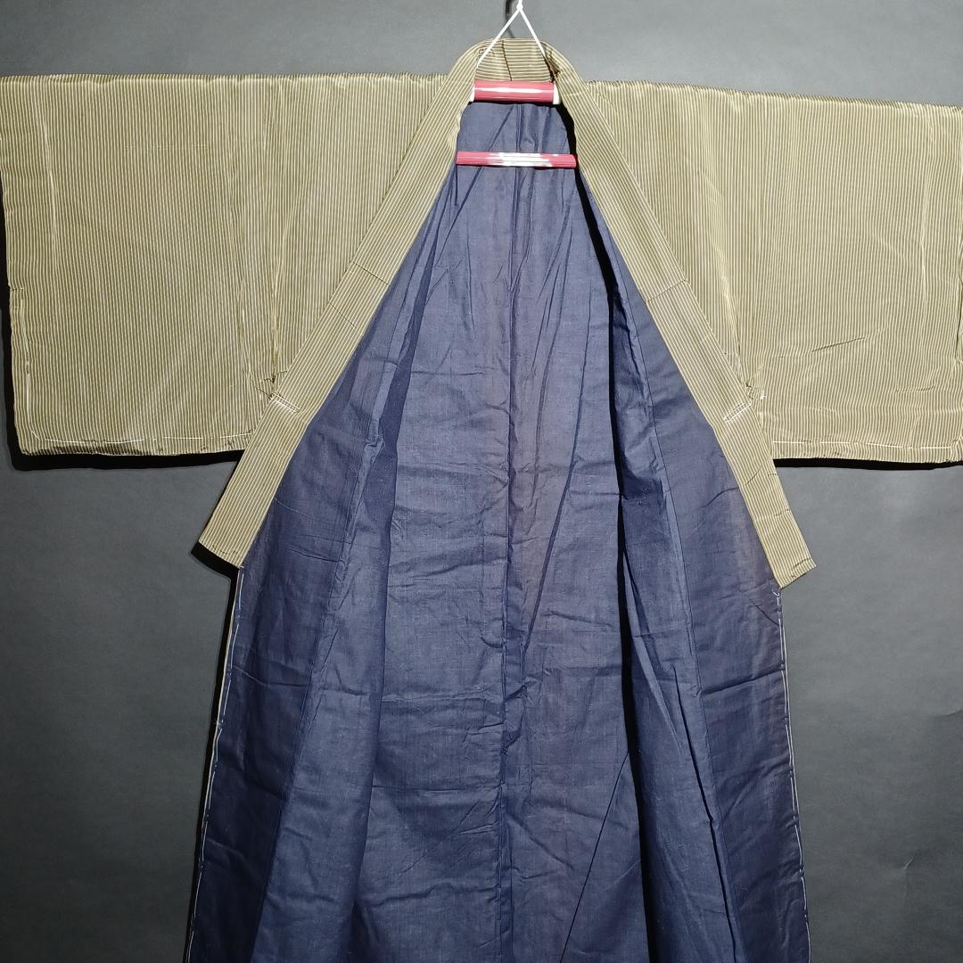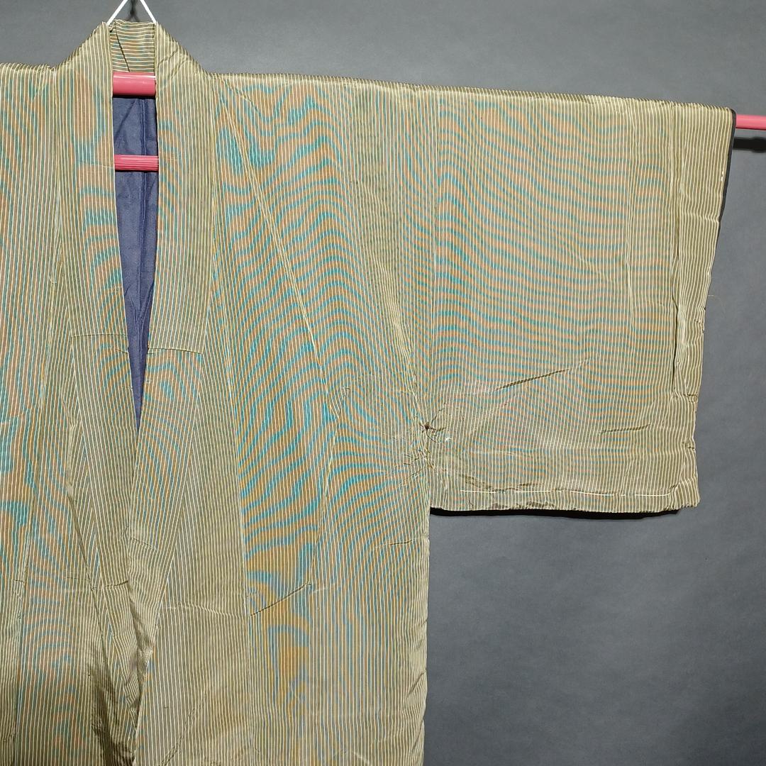 Used Japanese Vintage Men's Kimono Pale Green with Classic Stripe Pattern Traditional Cotton Yukata Robe Loungewear Height 137cm 54in