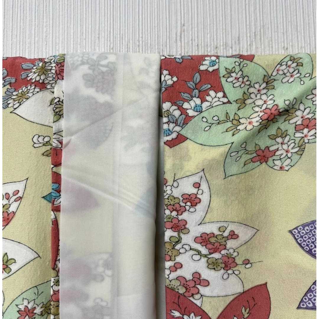 This charming "Komon" style kimono features a gentle pale yellow base adorned with a traditional autumn maple leaf (Momiji) pattern. Crafted from high-quality polyester, this kimono is fully "washable," making it an excellent choice for those who value easy maintenance without sacrificing authentic Japanese style.