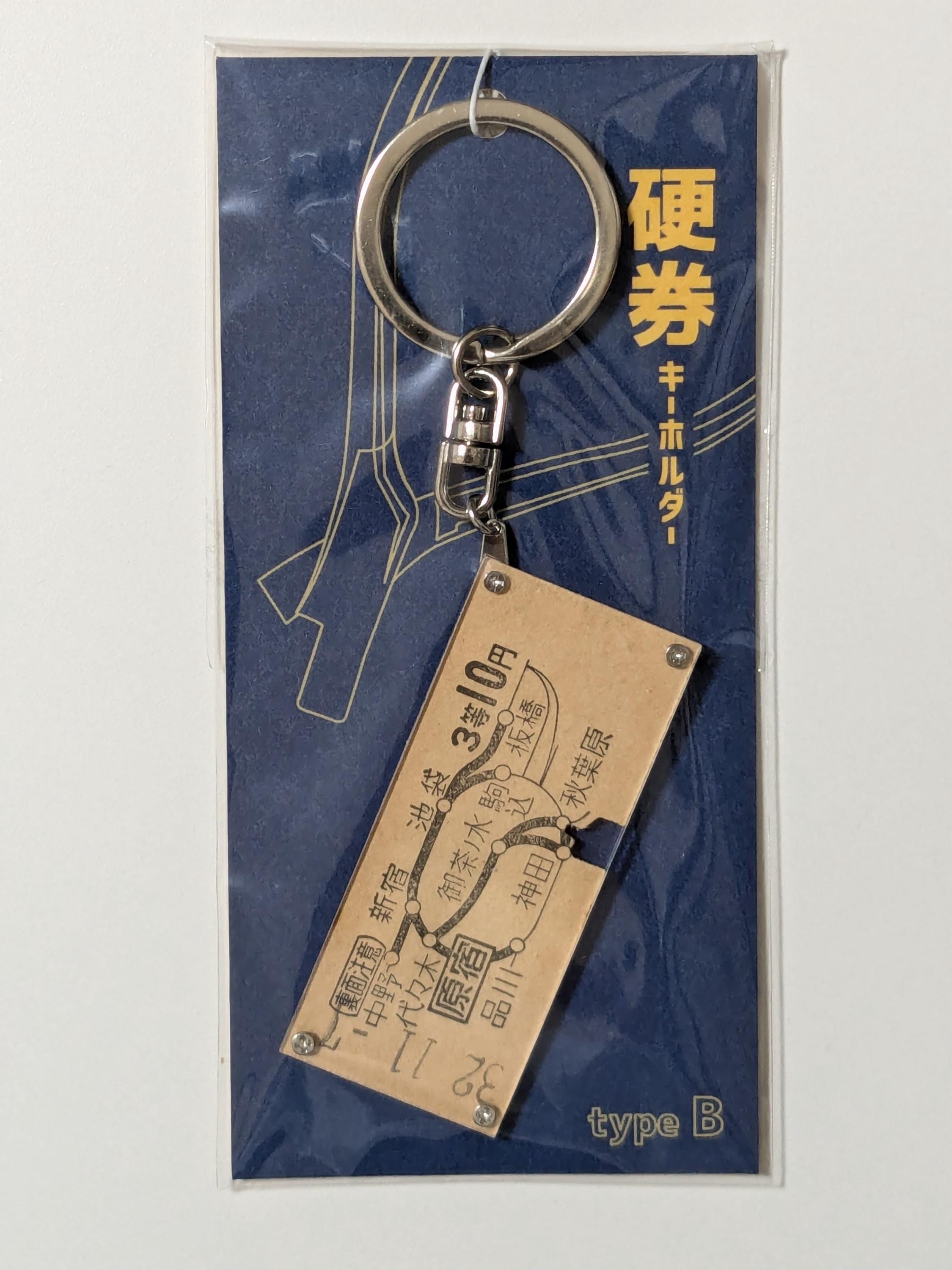 The additional piece is a modern reproduction train ticket keychain (硬券キーホルダー), made in 2023 by the brand kotokoto.