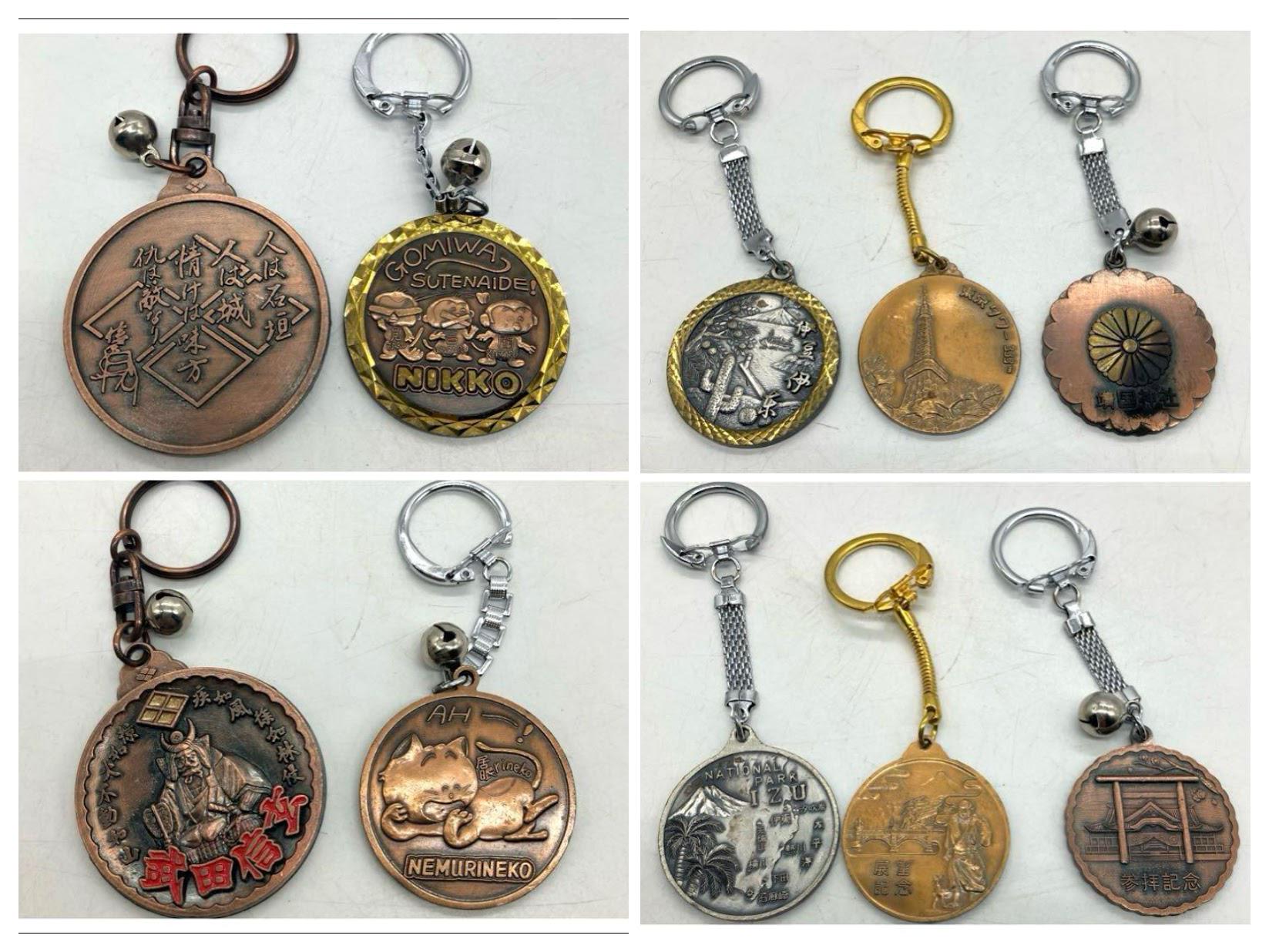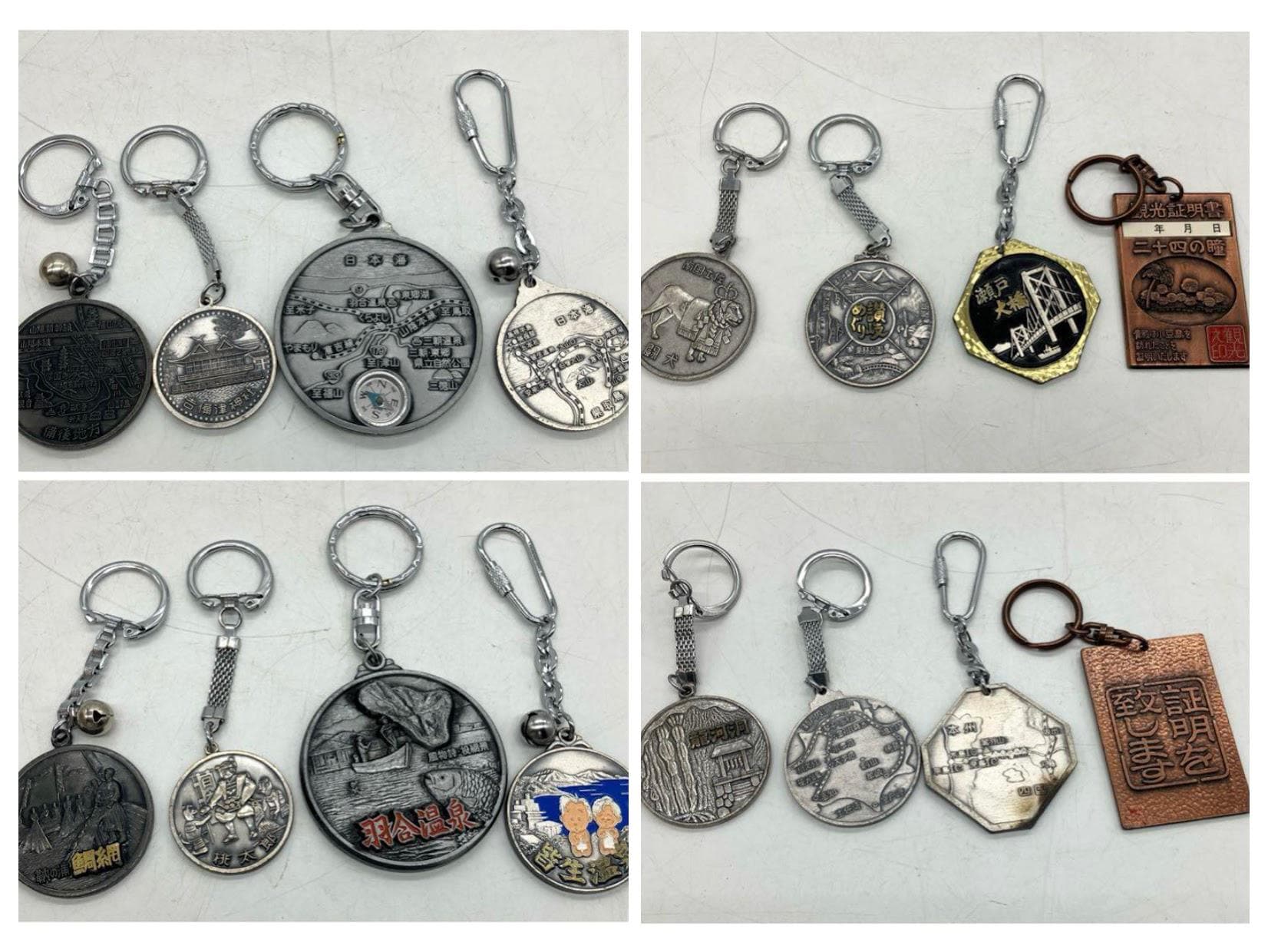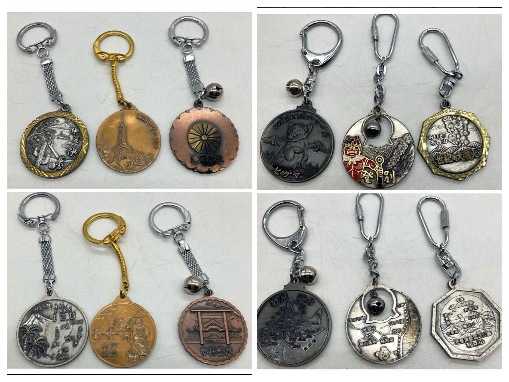 Used Lot of 42 Japanese Vintage Metal Keychains (Showa Era) with 2023 Train Ticket & Kai-toh Expo Set