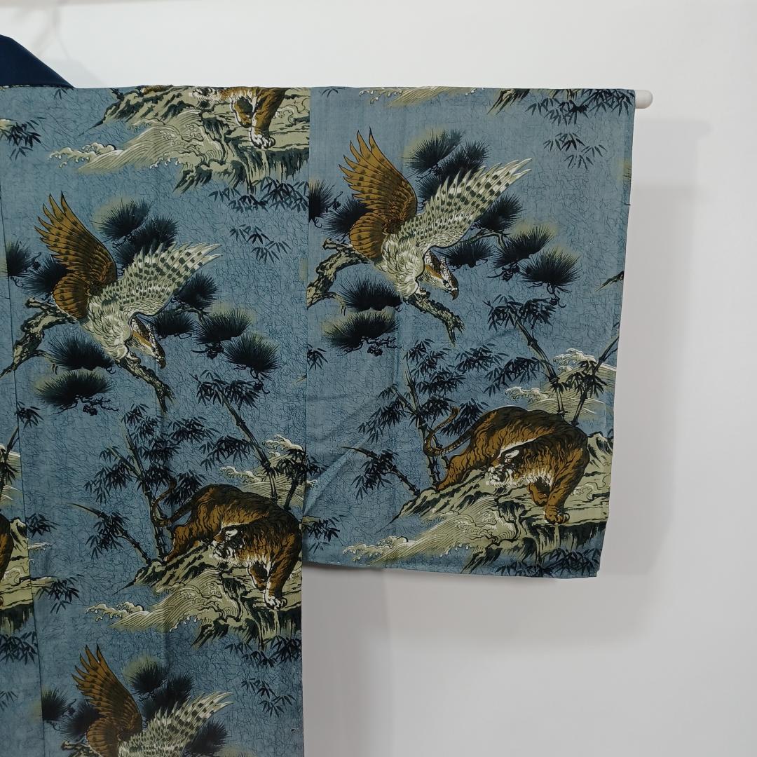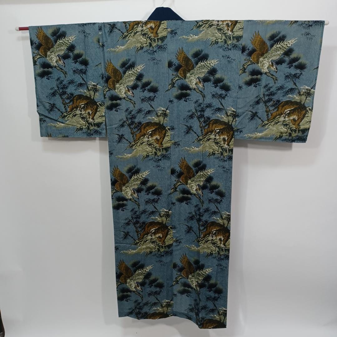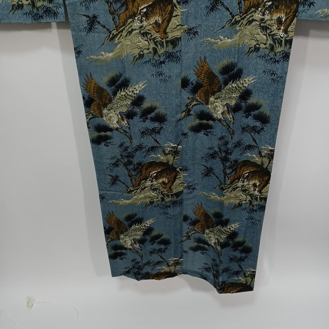 Used Men's Kimono Juban Blue Tiger Eagle Cotton Japanese traditional kimono underwear