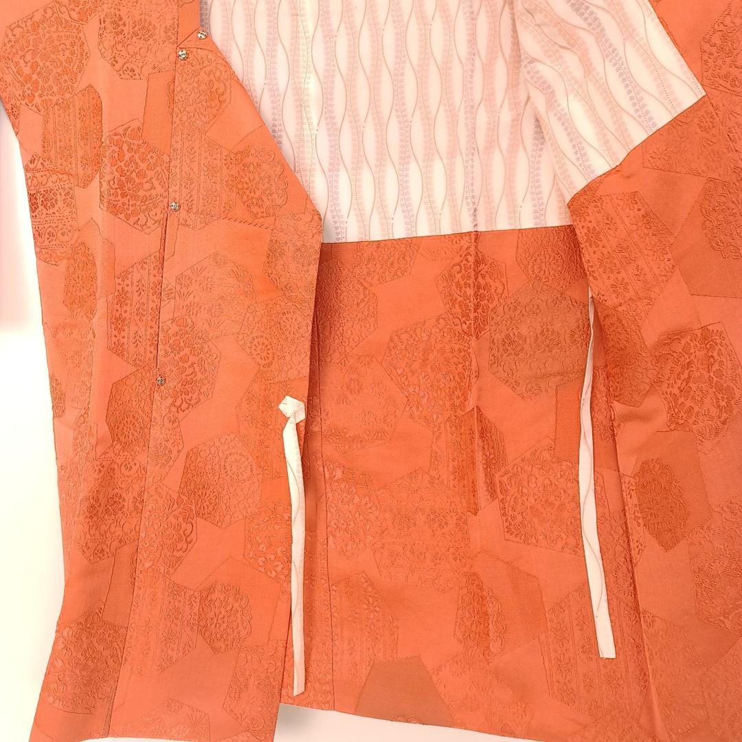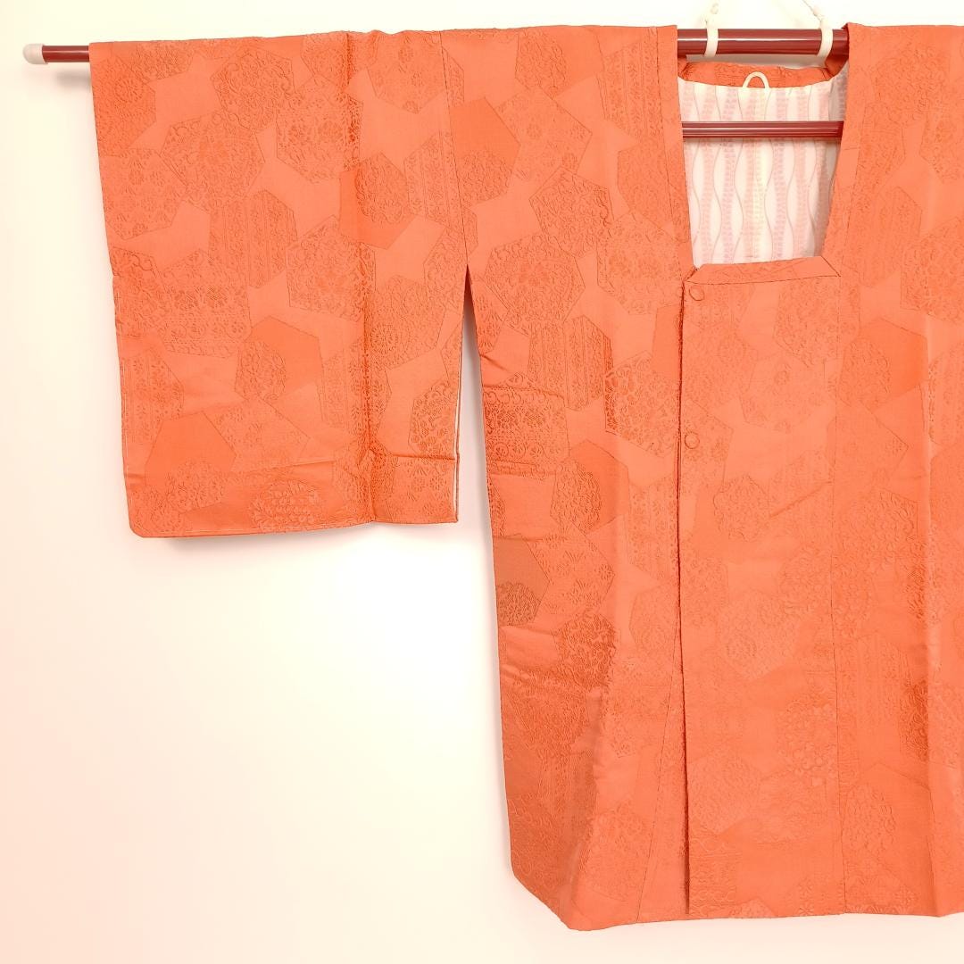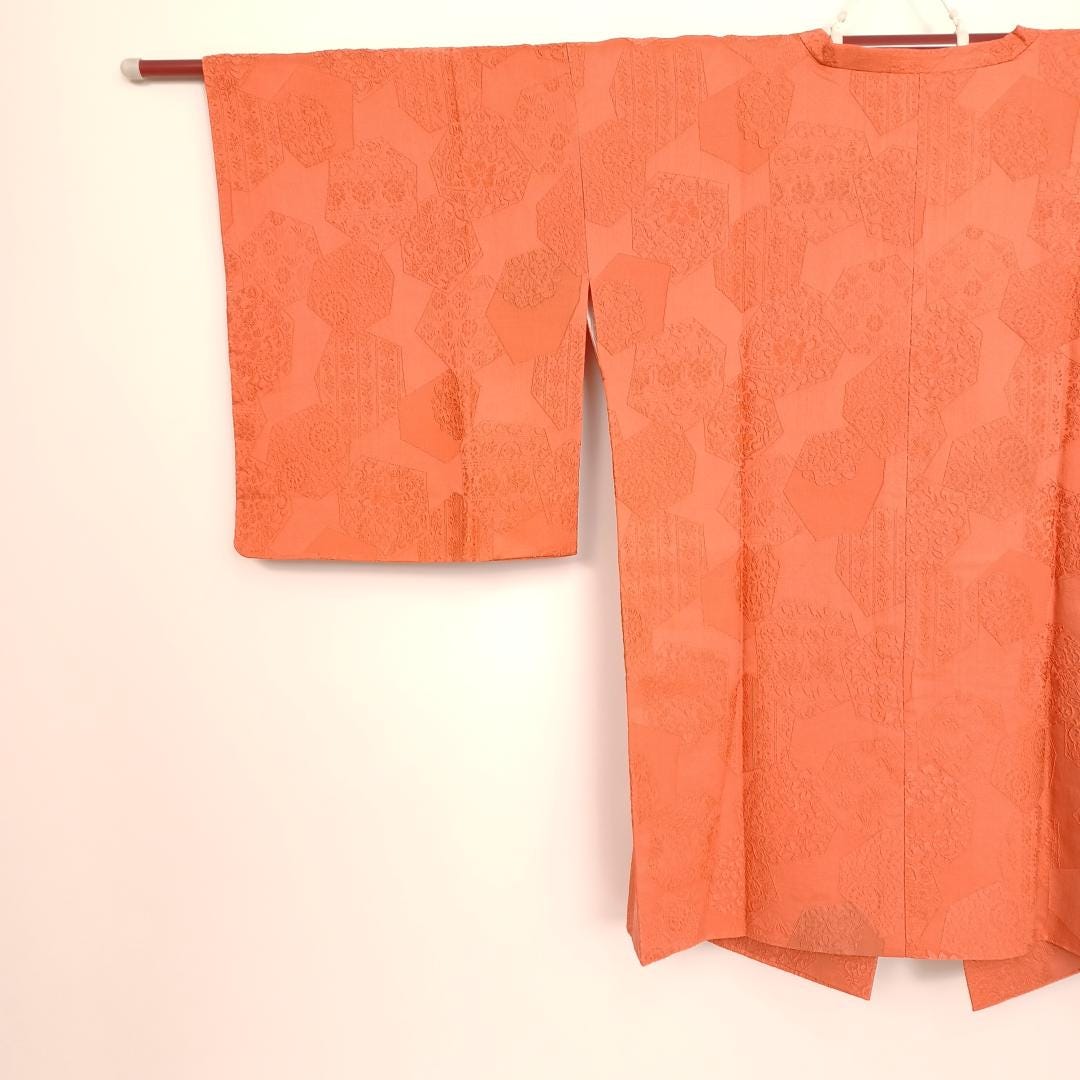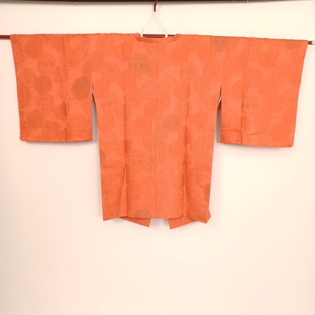 Used Michiyuki Kimono overcoat Silk Orange Made in Japan Japanese vintage traditional
