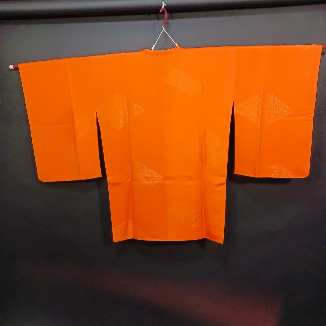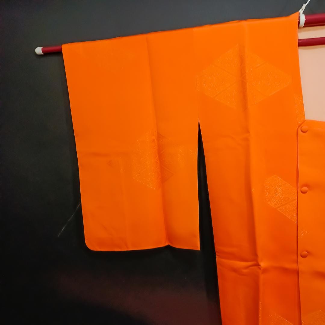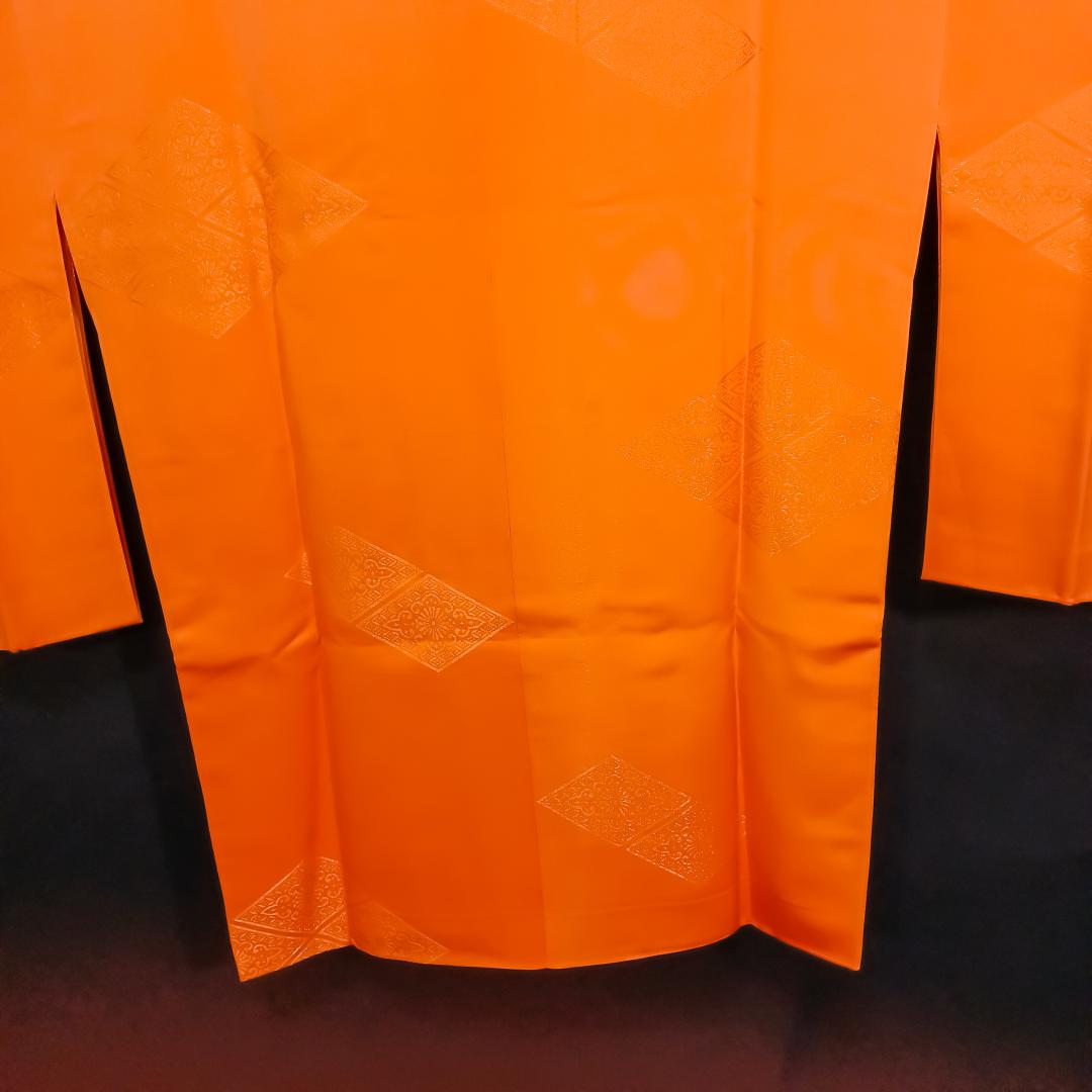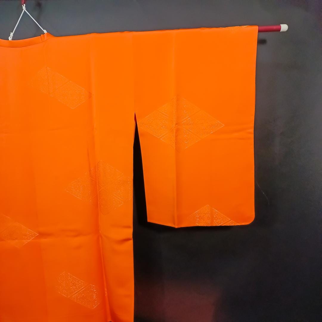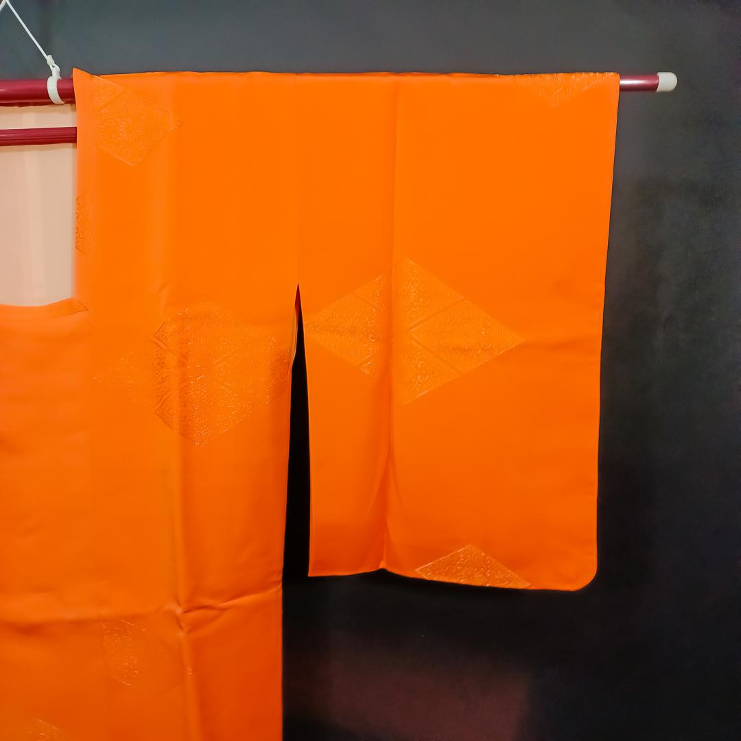Used Michiyuki Kimono overcoat Silk Orange Made in Japan Japanese vintage traditional