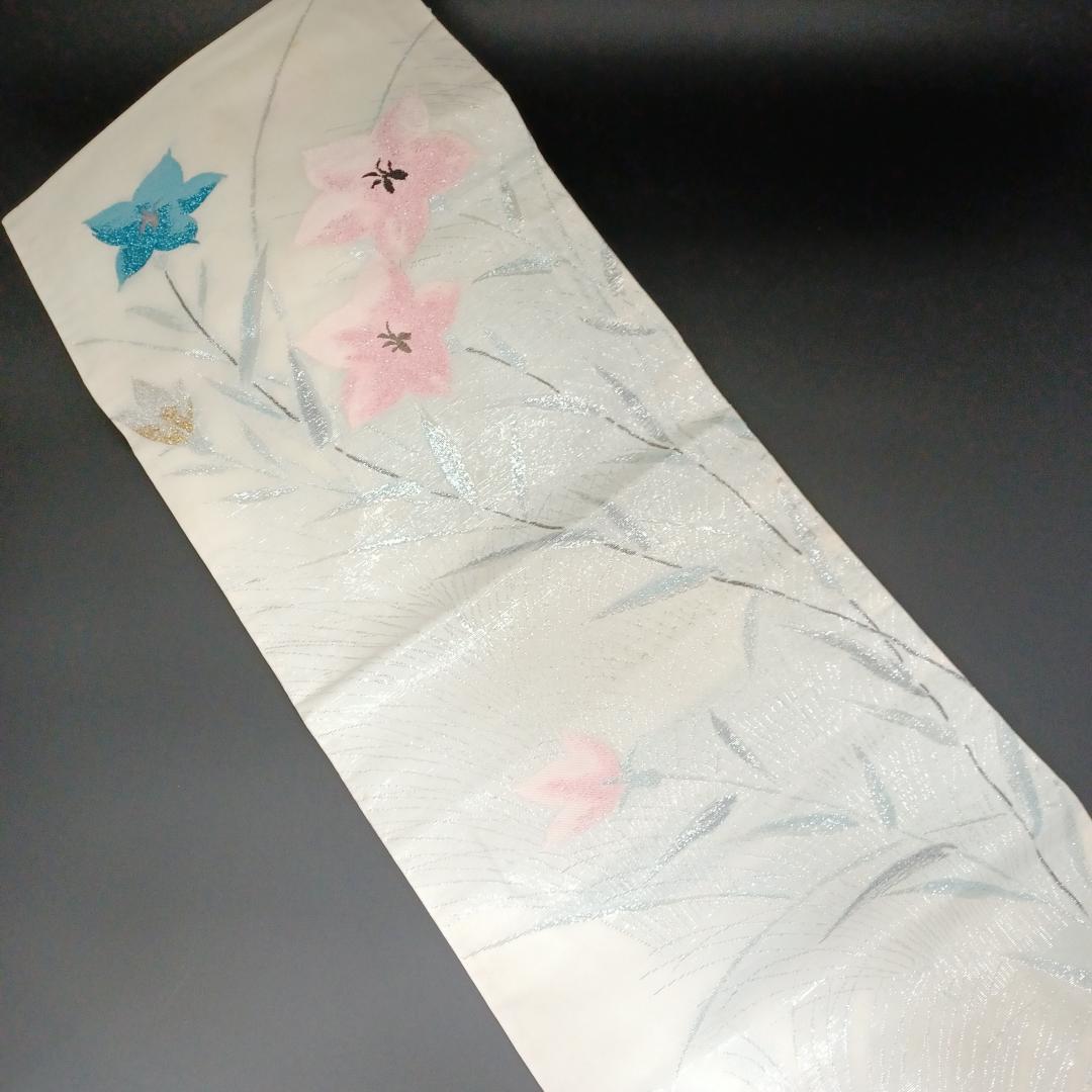 Used Nagoya Obi (Easy to Wear / Casual Use) Women's Kimono Obi Belt Silver Silk Made in Japan Japanese vintage traditional