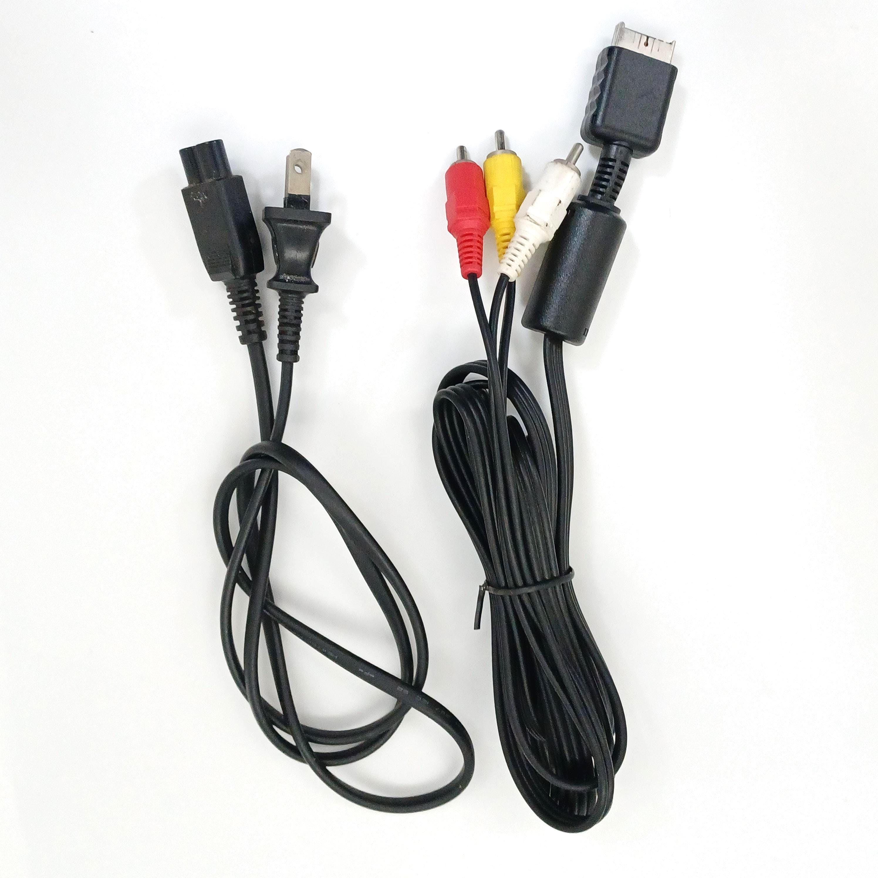 Used Sony PS1 PS2 AV Cable (Official) & Power Cable (Compatible) Set – Japan Import NTSC-J Tested – 100V Only