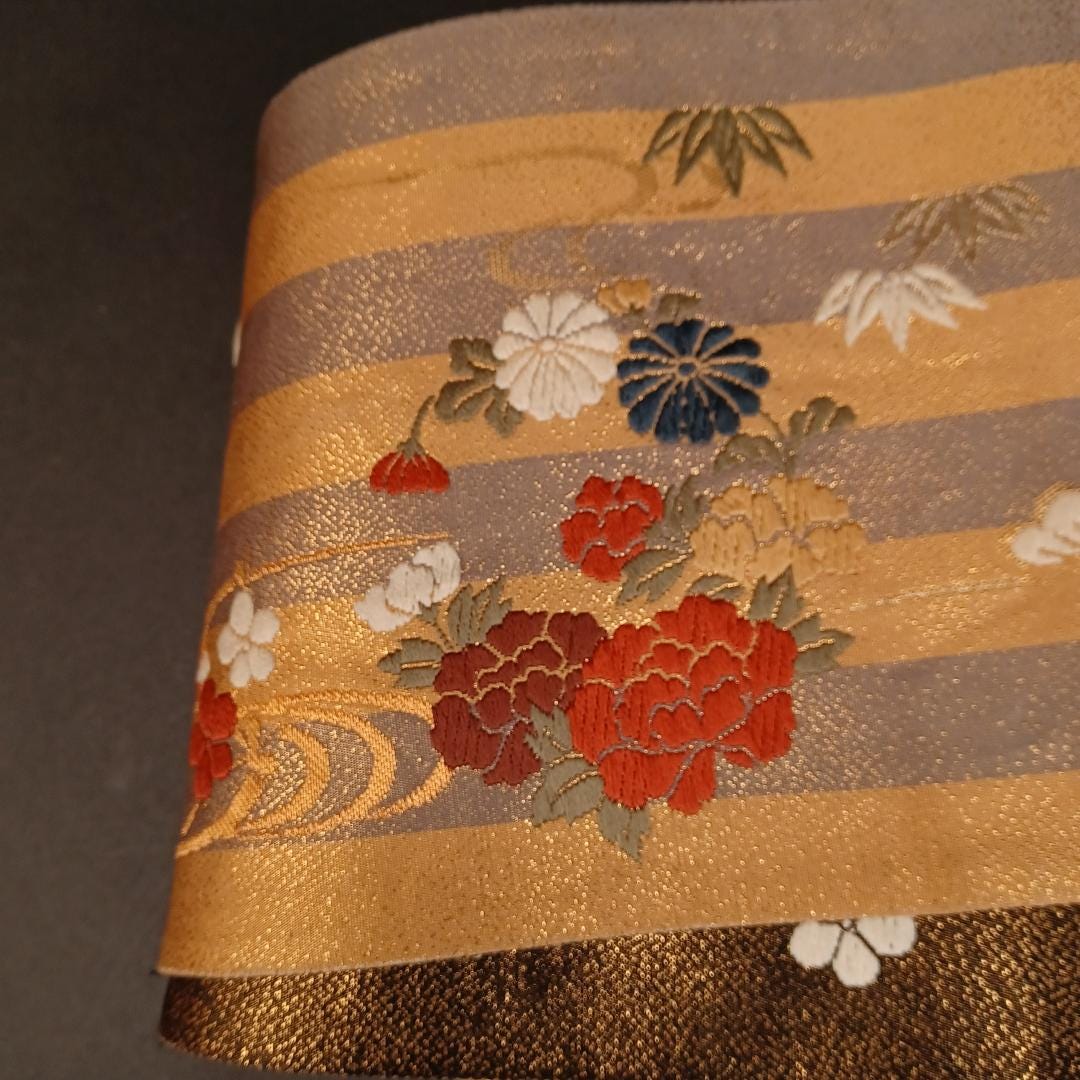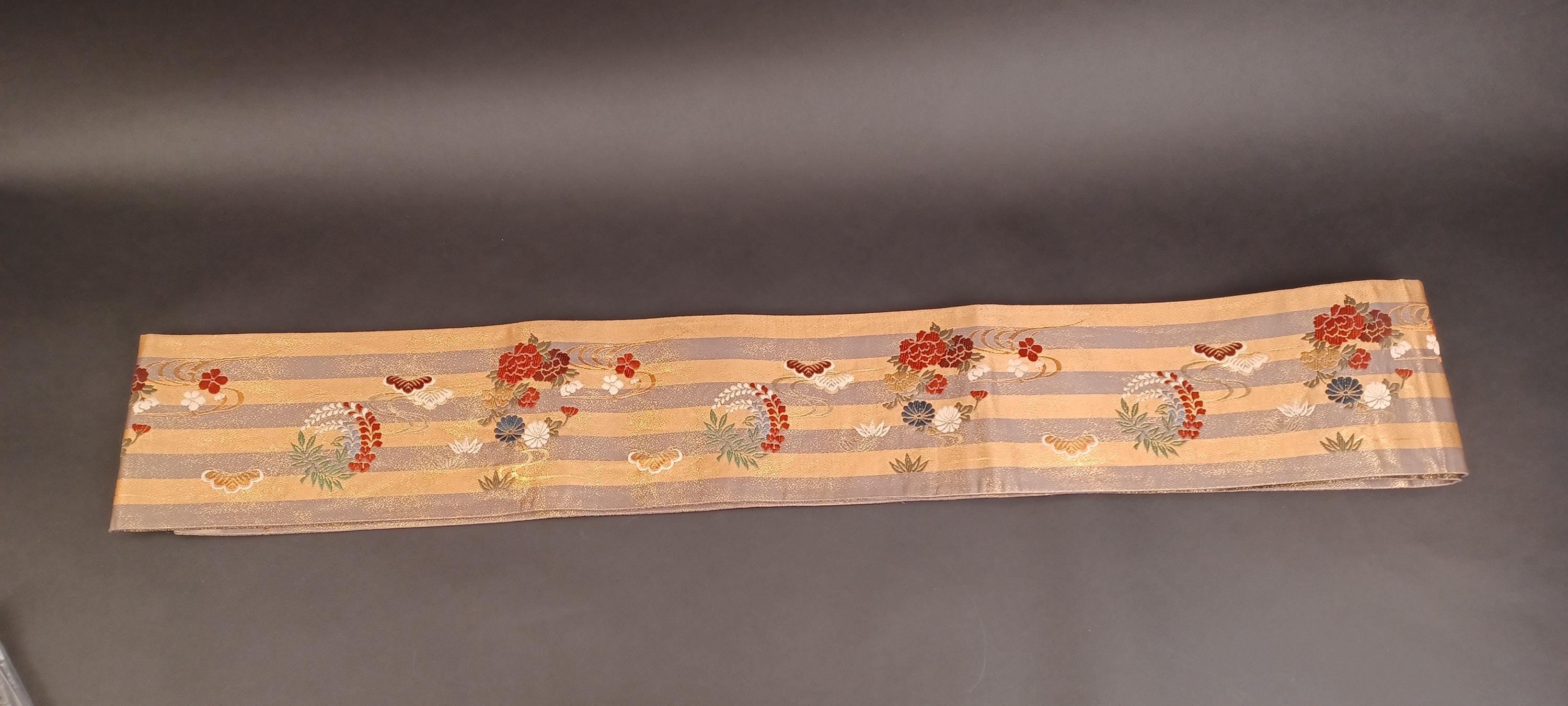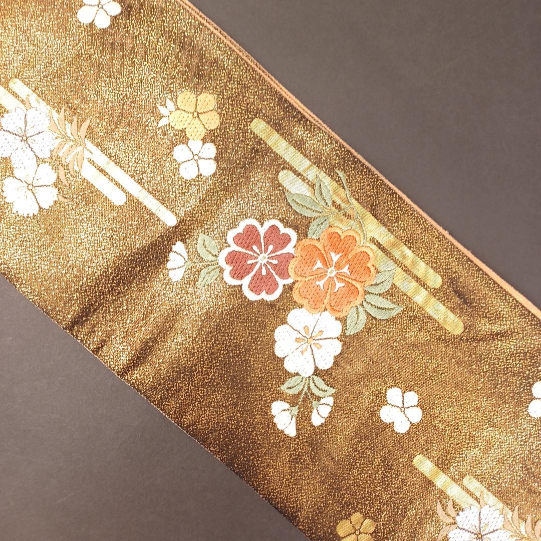 Used Women’s Hanhaba Obi – 100% Silk Kimono Belt – Gold – Made in Japan – Japanese Vintage Traditional – Authentic Kimono Accessory